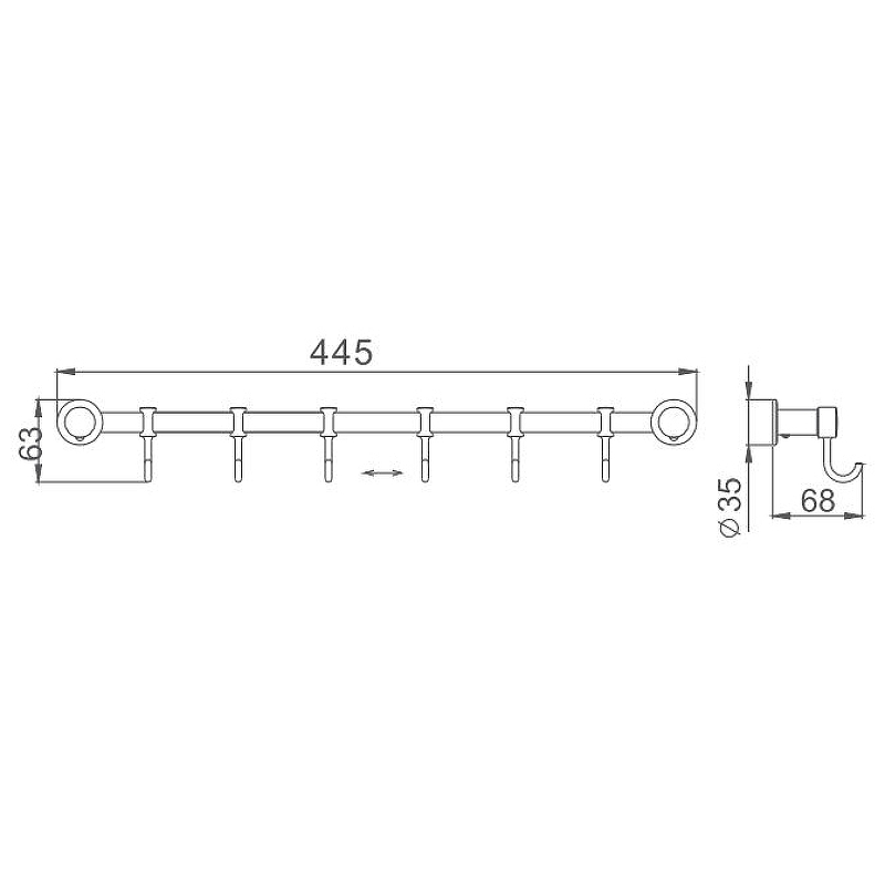 HB205-6 Планка 6 крючков