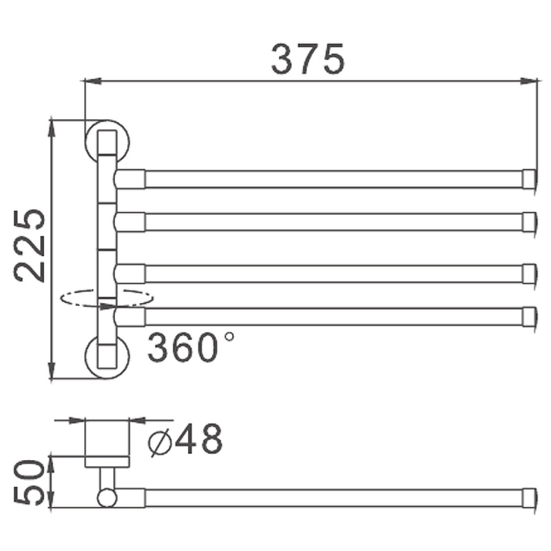 HB8714 Держатель для полотенца 4-е рога, черный