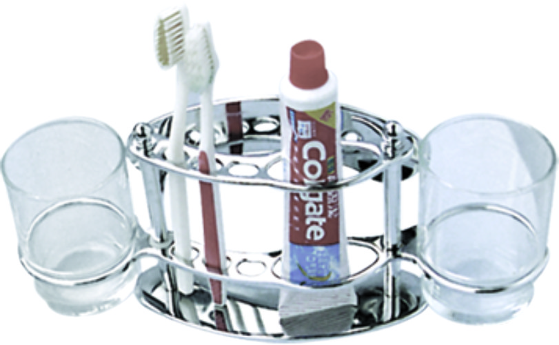 HB101 Держатель 2-х стаканов, зубной пасты и щеток, хром