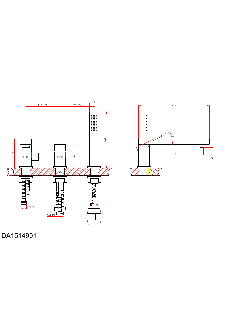 Смеситель на борт ванны DK Bayern.Liszt DA1514905 черный