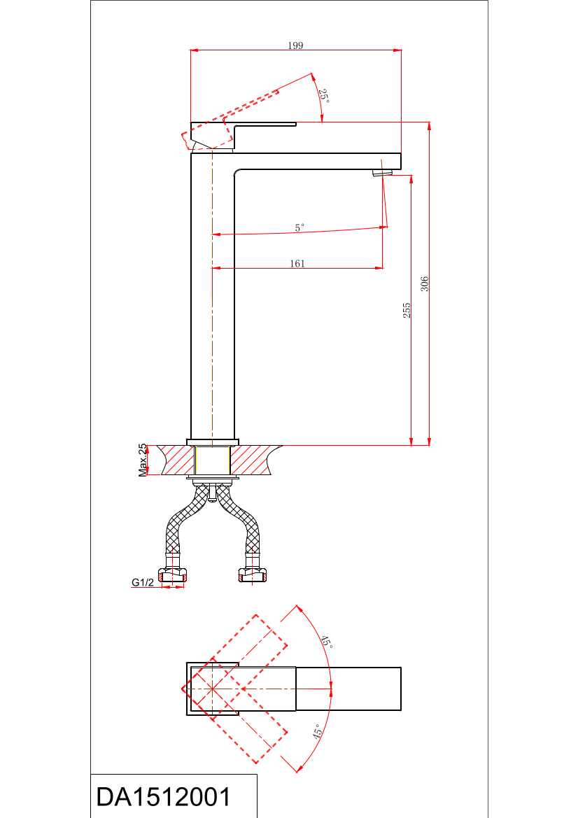 Смеситель для раковины DK Bayern.Liszt DA1512001 высокий хром
