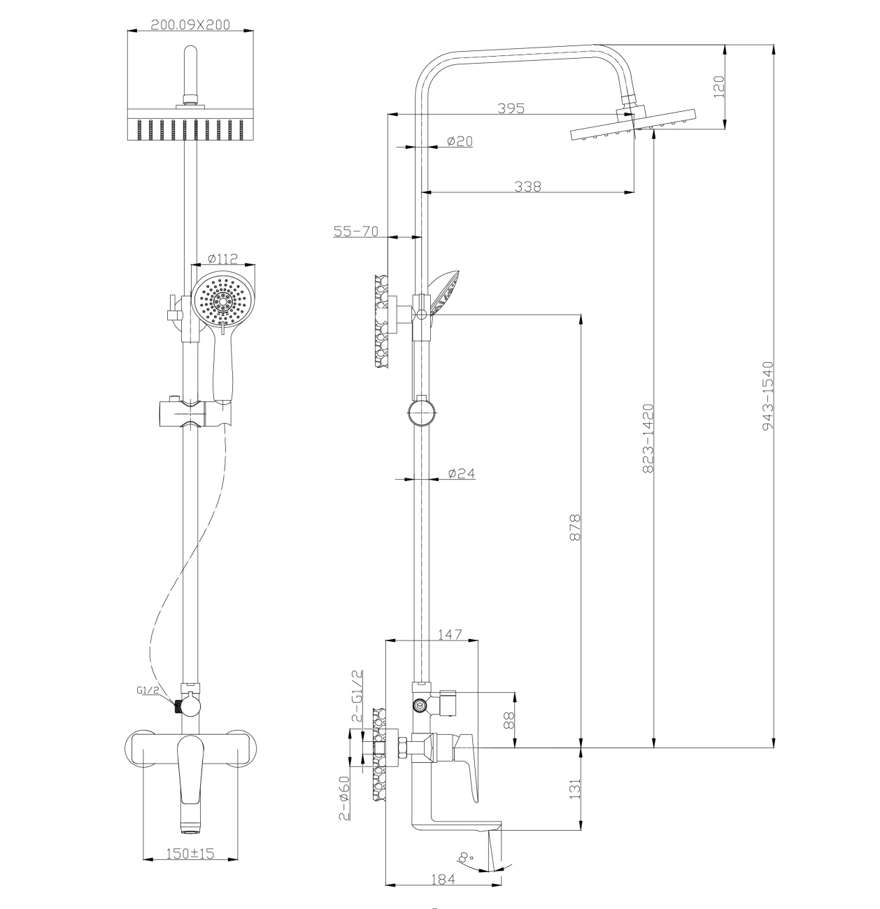 "KIN" TOK-KIN-1016 Душевая стойка с тропическим душем и смесителем TOKITO