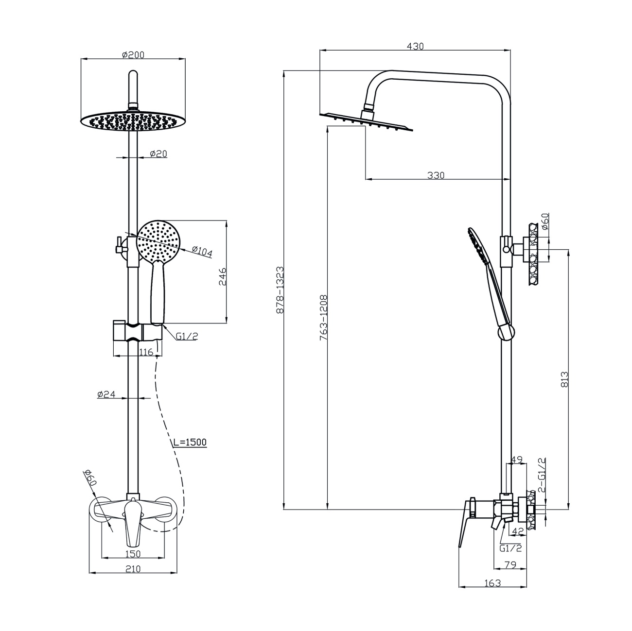 "KUDO" TOK-RAI-1014BL Душевая стойка с тропическим душем и смесителем TOKITO
