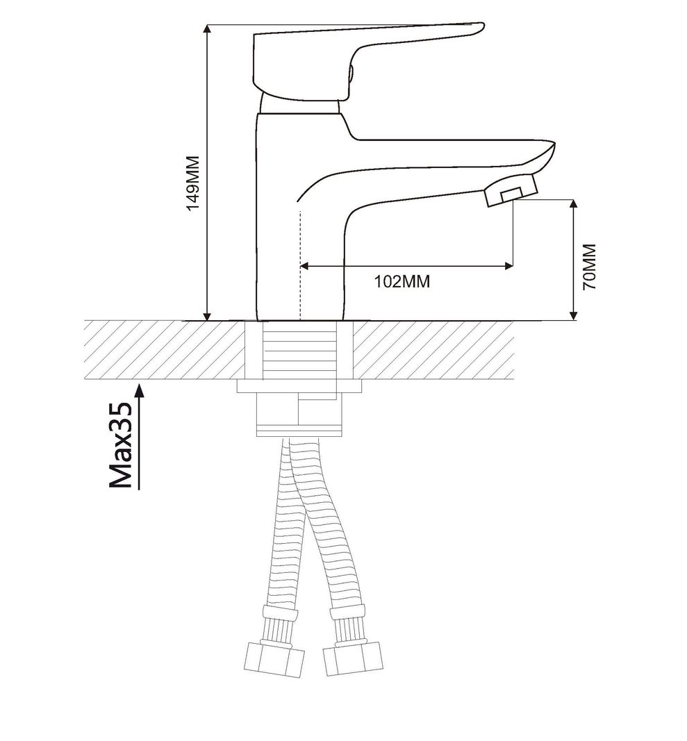 A1008-C Смеситель для умывальника с гайкой, белый+хром