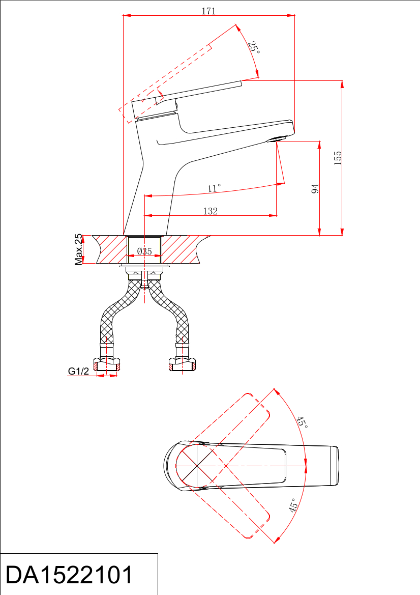 DA1522101 Смеситель для раковины, хром