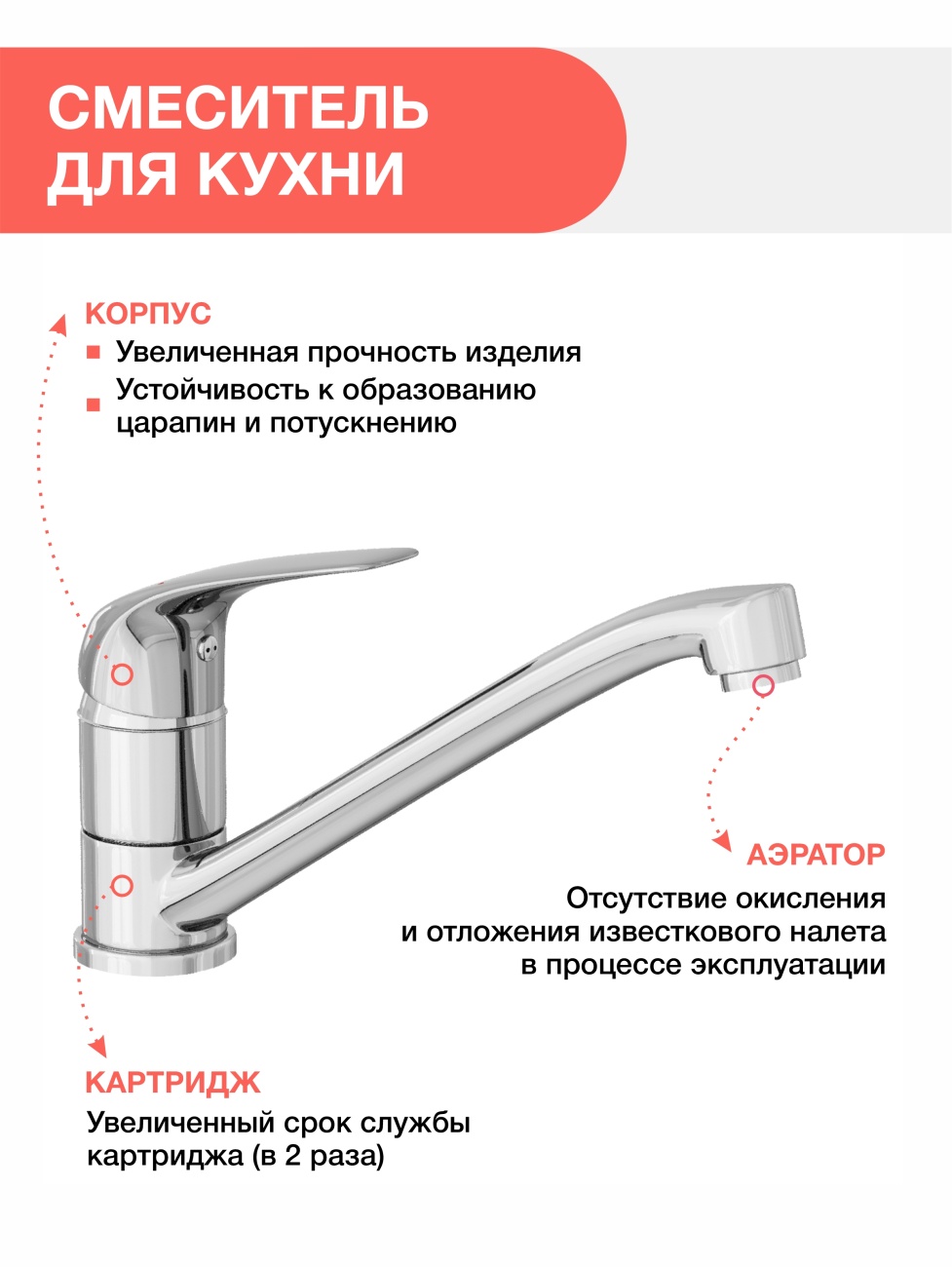 Смеситель для кухни AVRORA Pulse AV2021 с высоким поворотным изливом