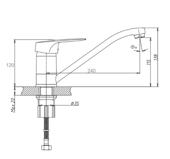 Смеситель для кухни с изливом, хром, D-Lin D141810