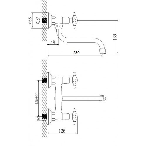 Смеситель для кухни настенный с изливом, хром, D-Lin D142808