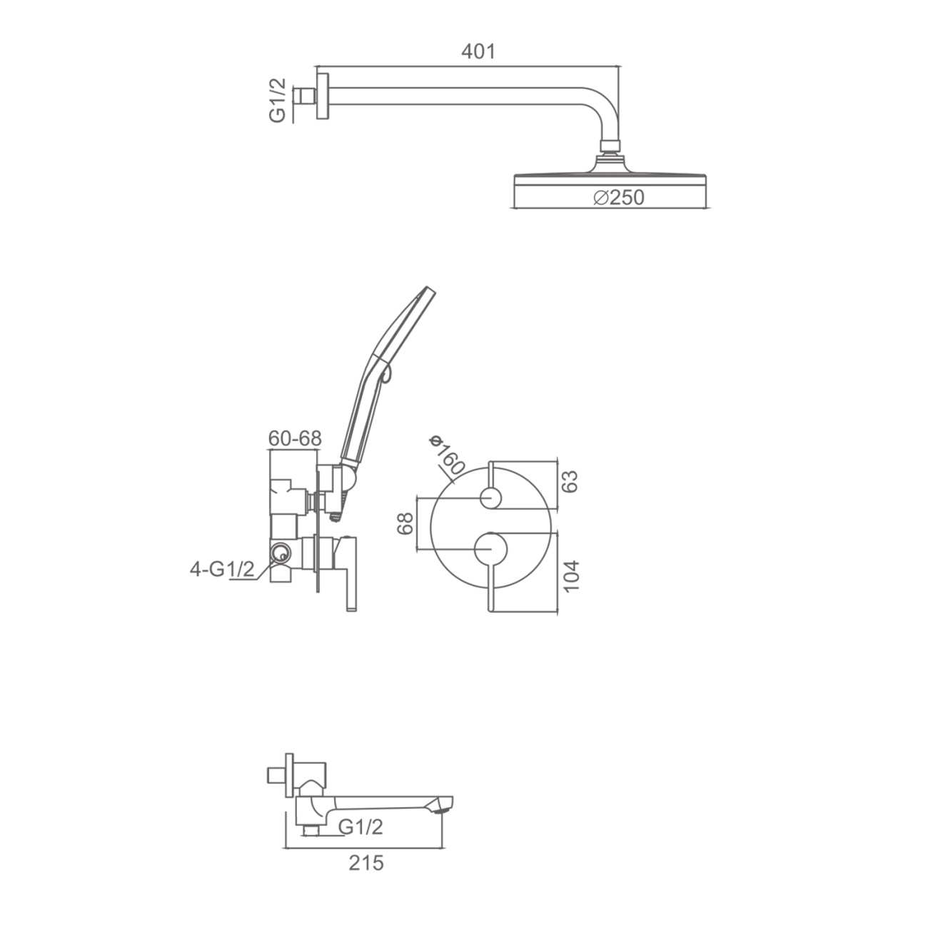 Душевая система для ванны и душа, сатин Splenka, S224.24.05