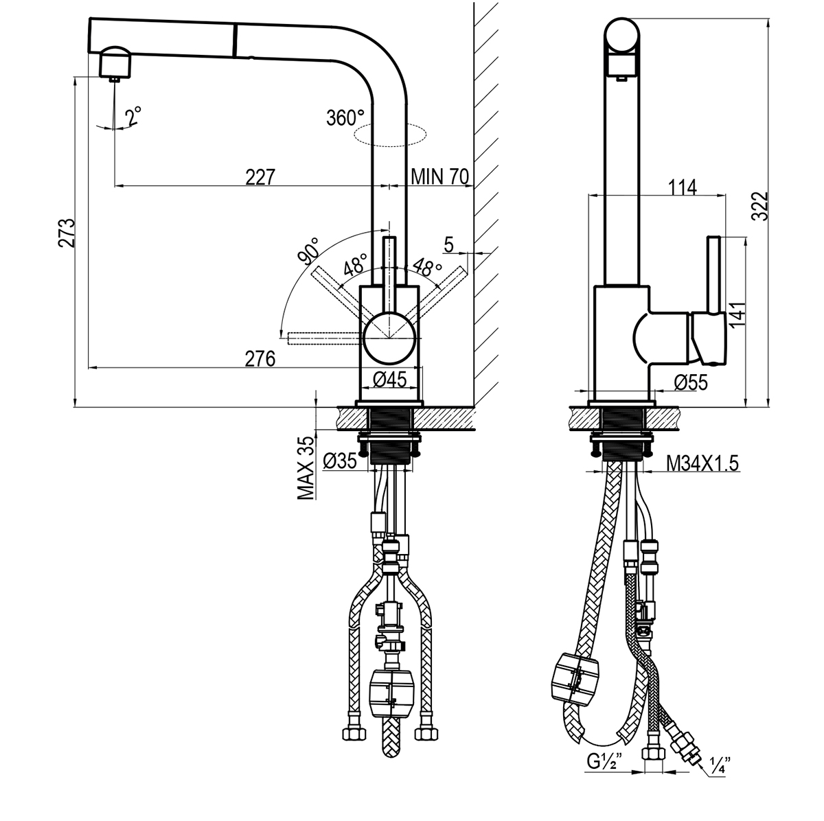 W35-55 Смеситель для ванны и душа, встраиваемый, хром/белый