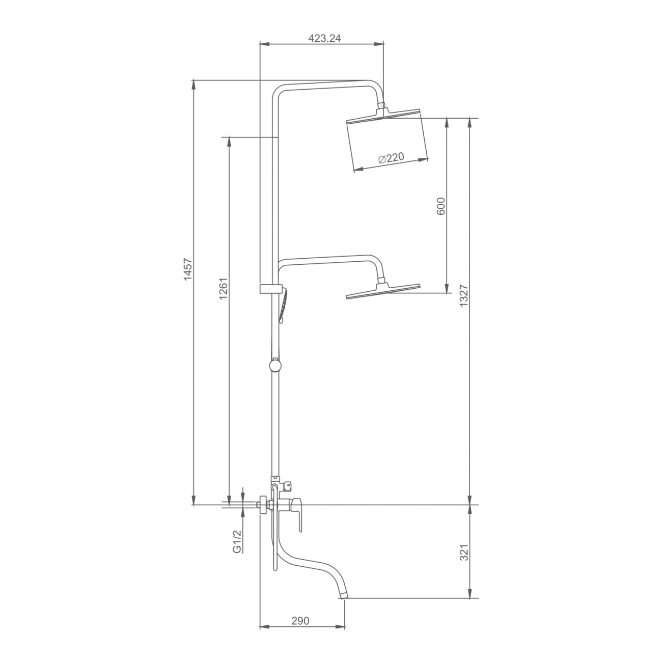 Душевая система для ванны и душа, хром Splenka, S02.24