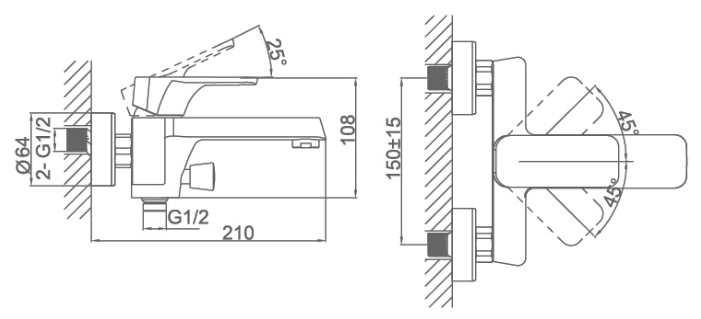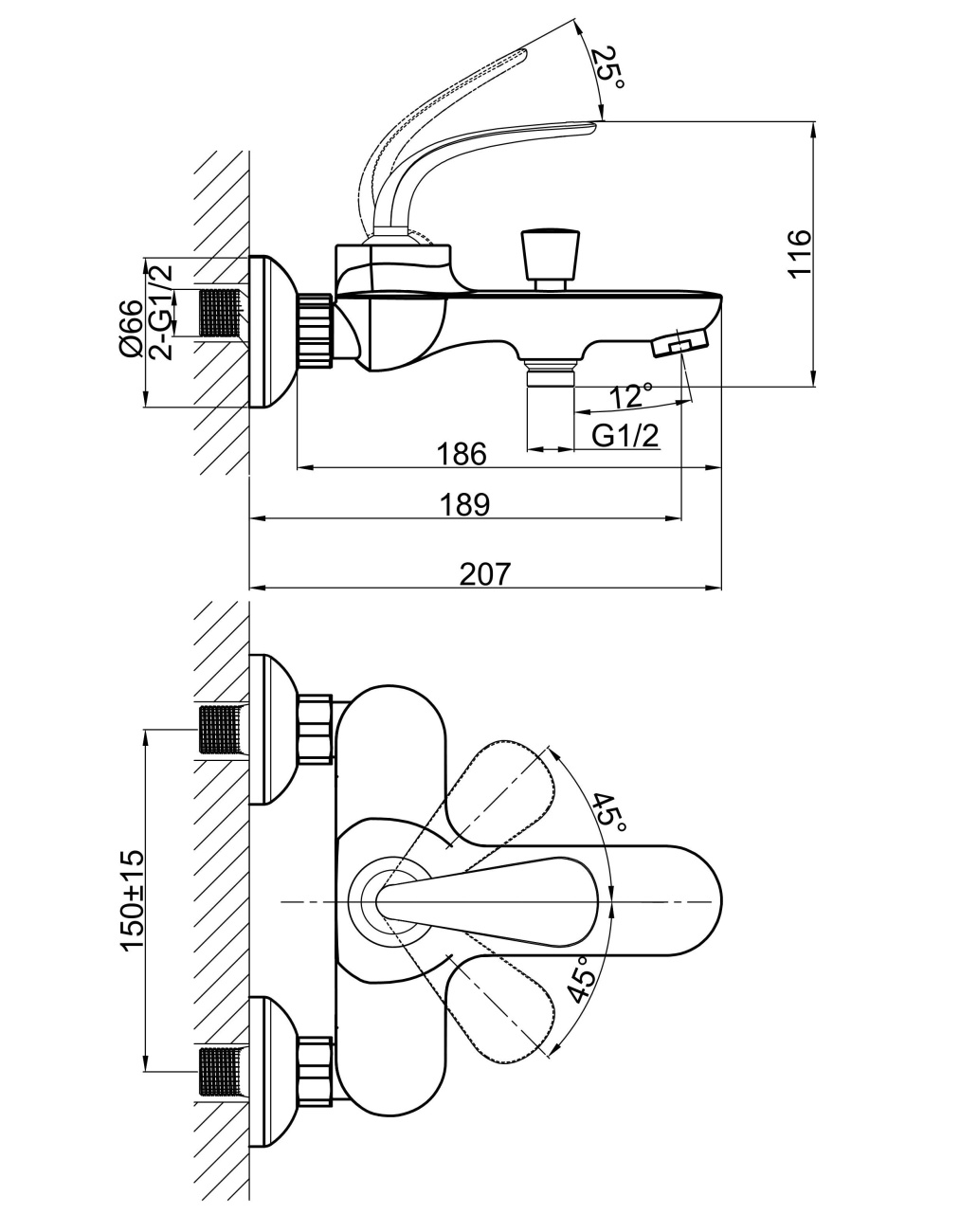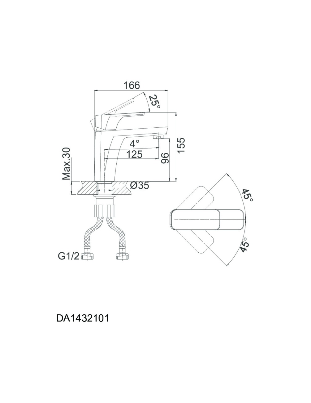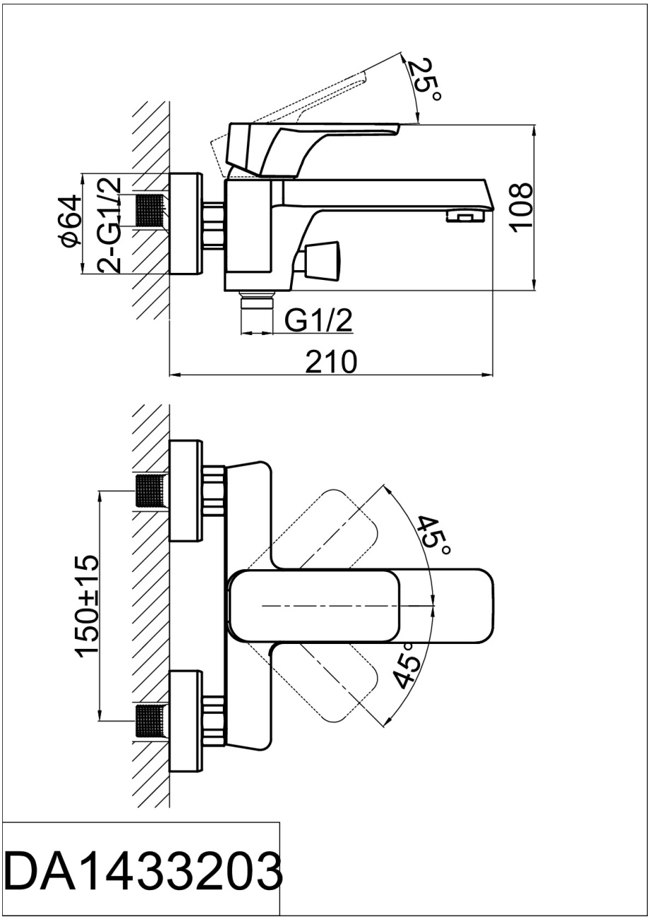 DA1433216 Смеситель для ванны с душем, короткий излив, белый/хром