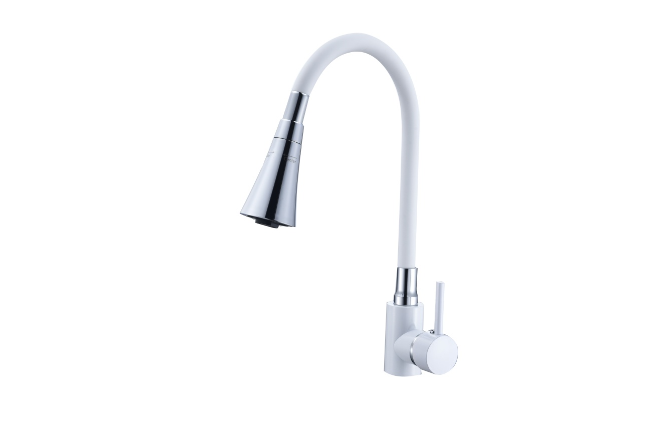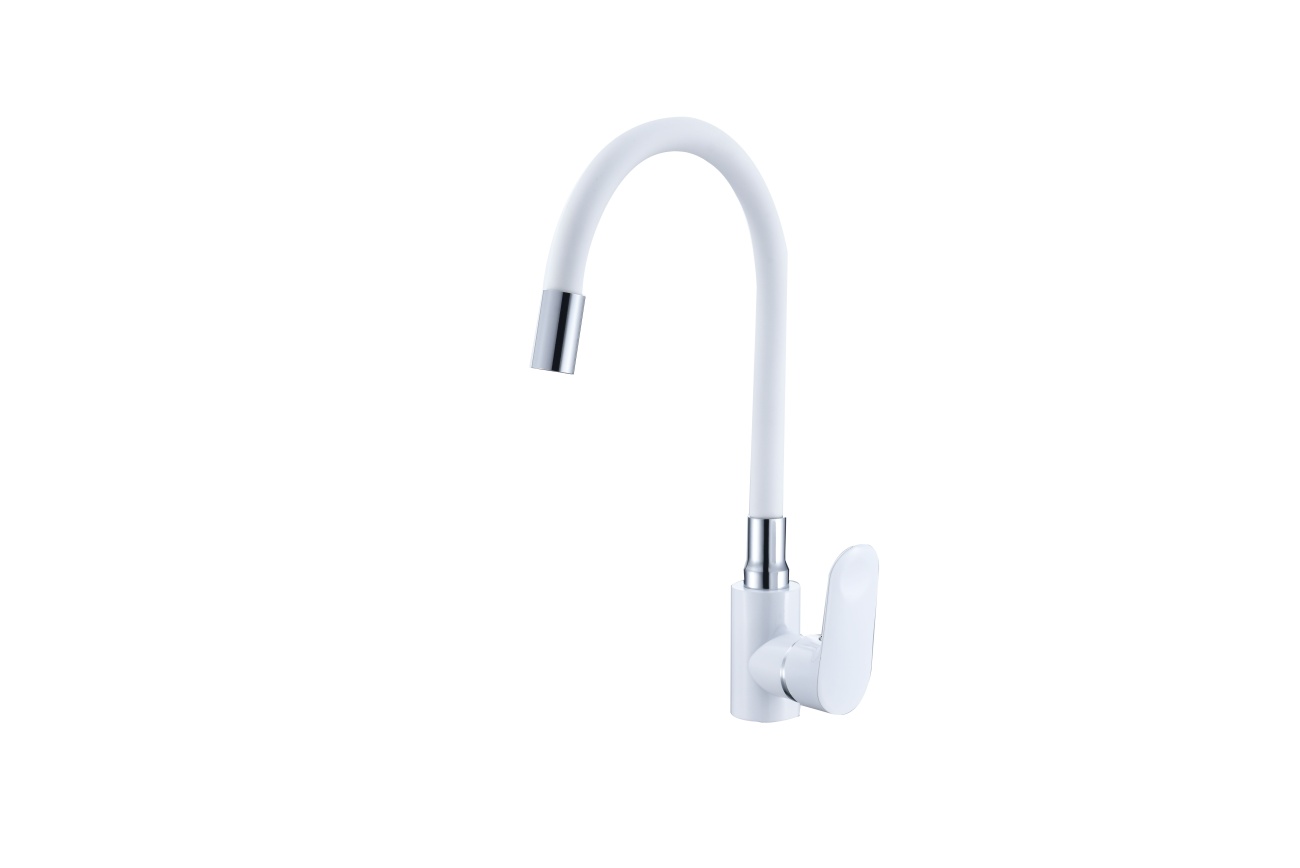 A5508-C Смеситель для кухни с гайкой, с силиконовым изливом, белый
