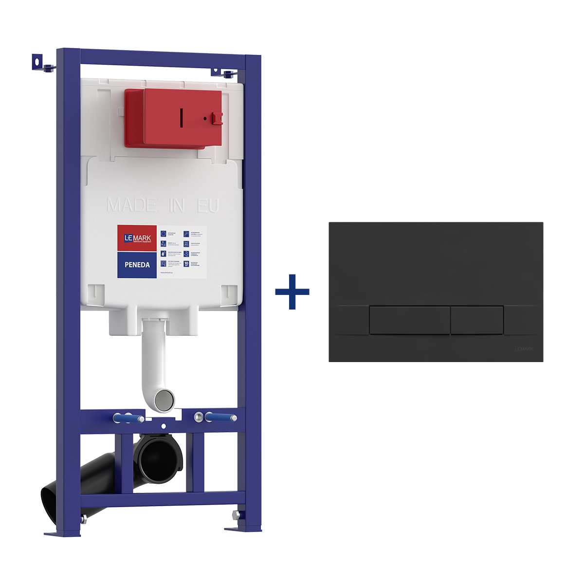2в1: Инсталляция Lemark PENEDA + кнопка смыва чёрный матовый Soft touch