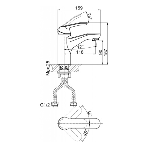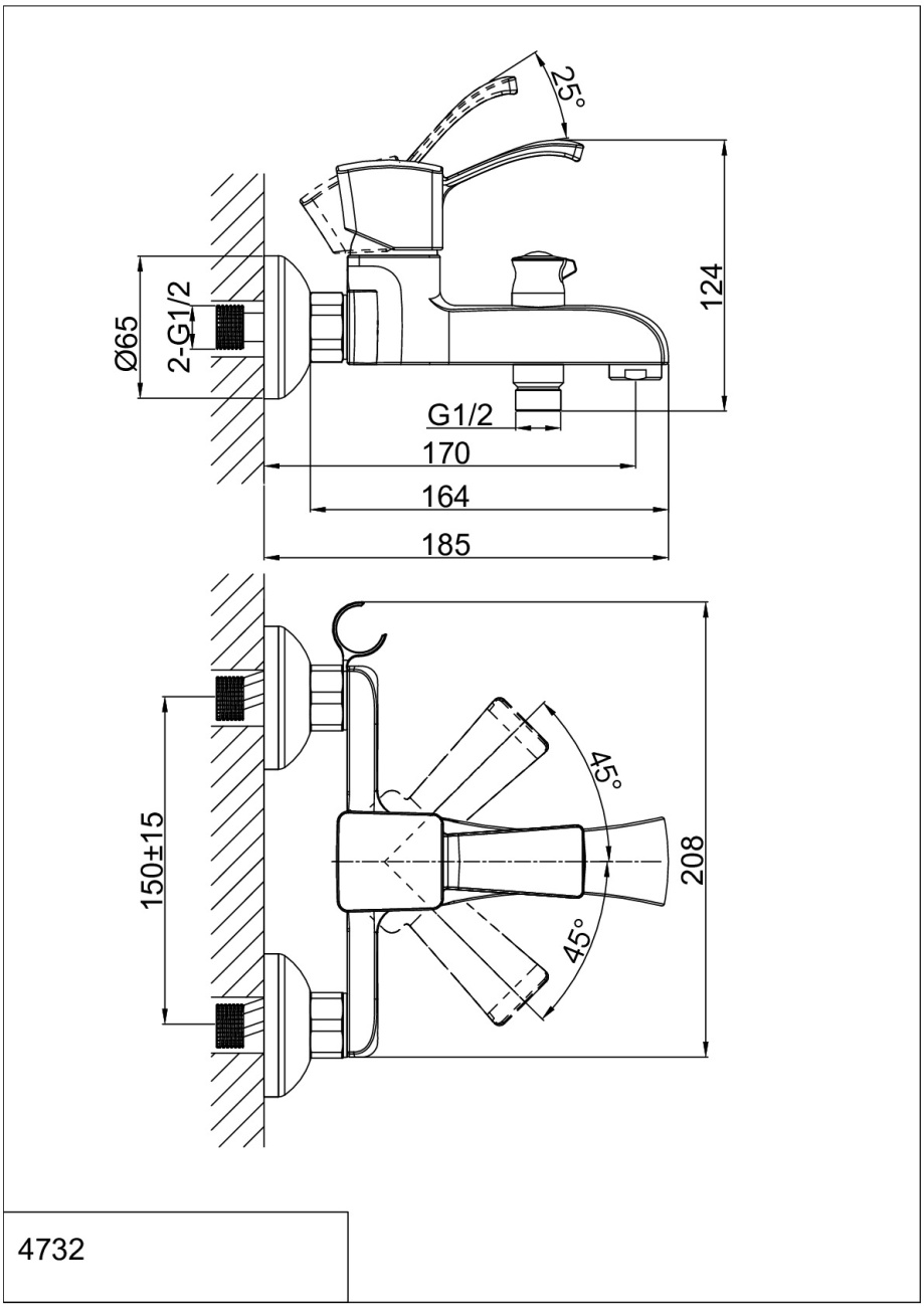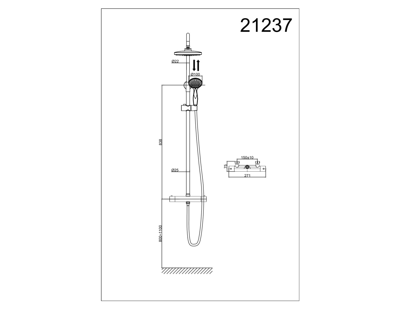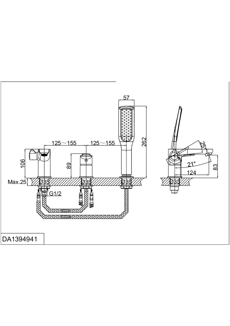 DA2153201 Смеситель для ванны с душем термостатический, хром