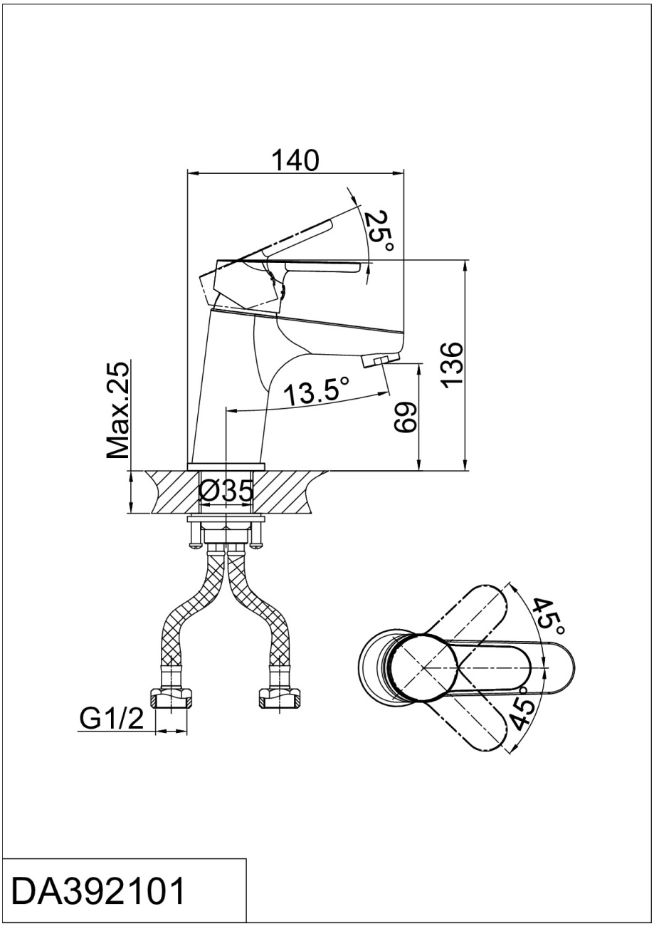 DA1343301 Смеситель для ванны, длинный излив, хром