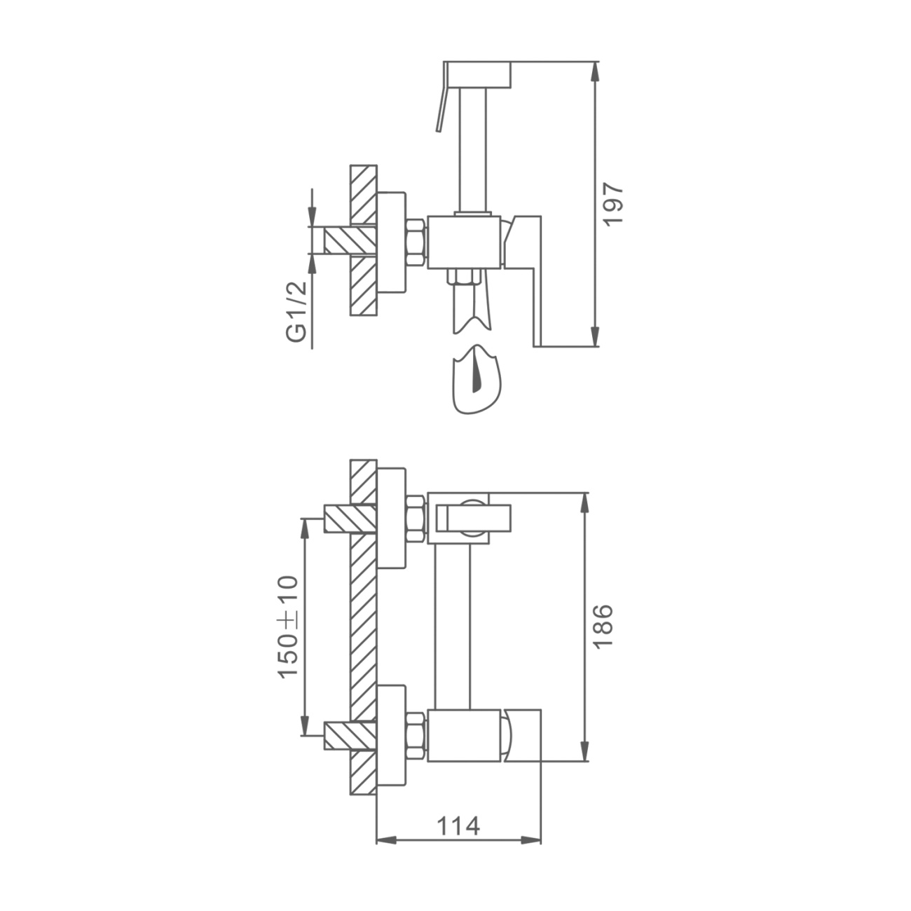 Смеситель настенный с гигиеническим душем, сатин Splenka, S98.51.05