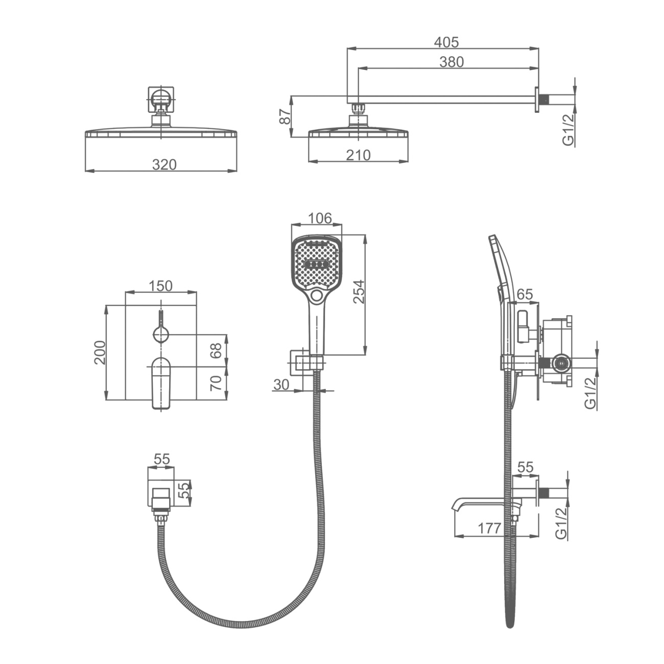 Душевая система для ванны и душа, хром Splenka, S03.24