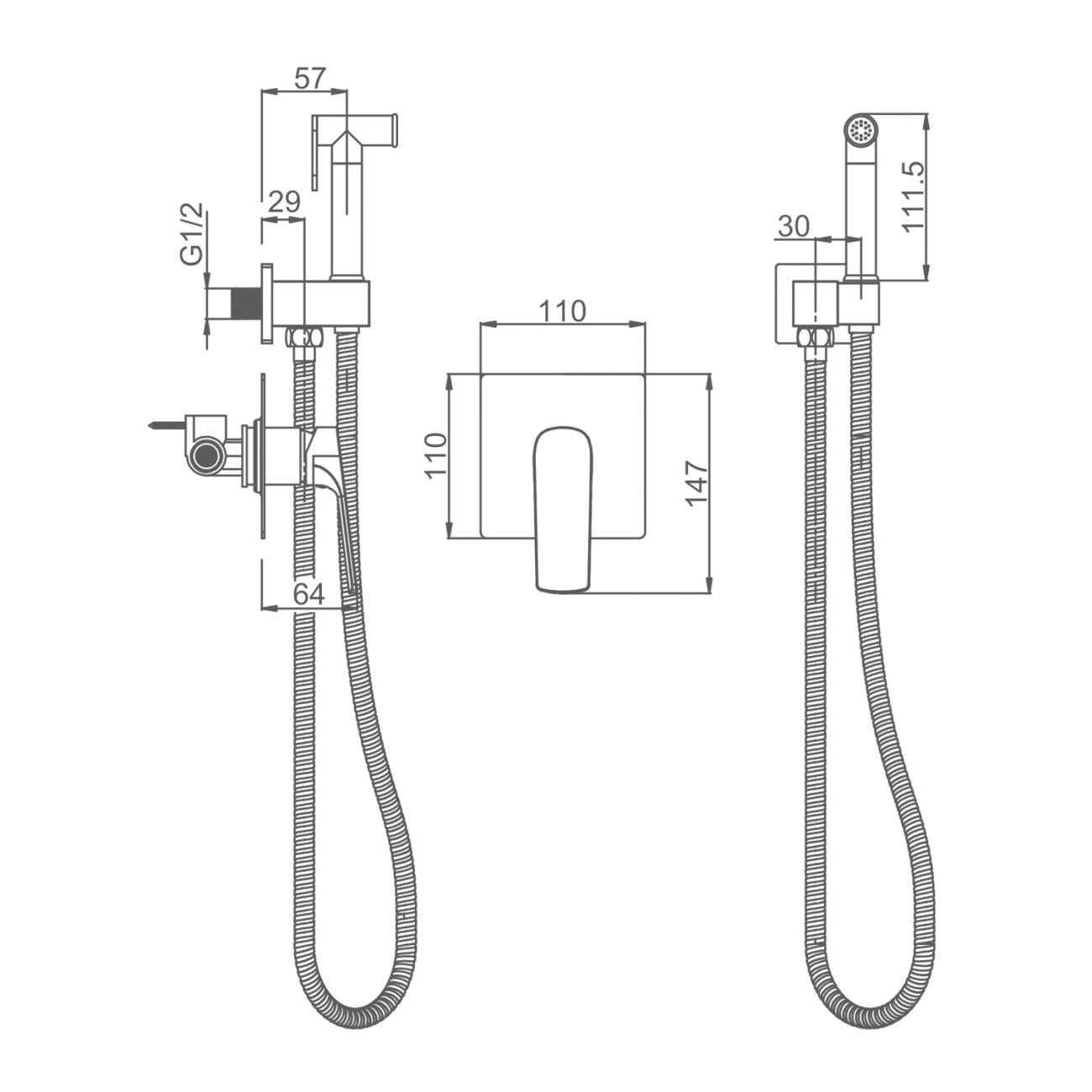 Смеситель с гигиеническим душем встраиваемый, хром Splenka, S30.53