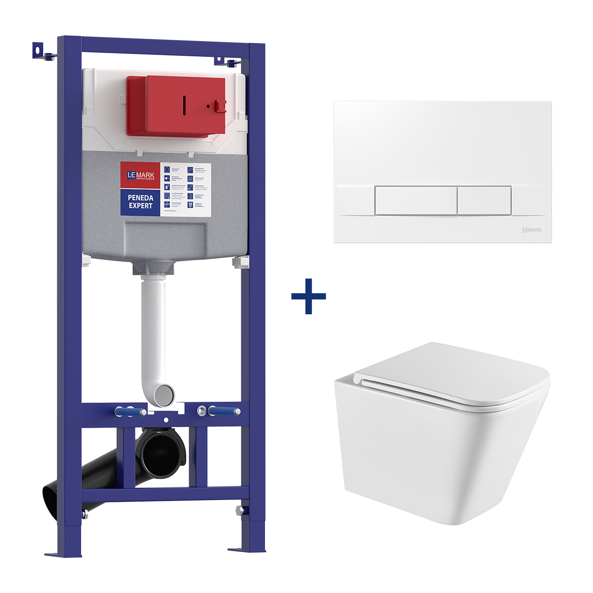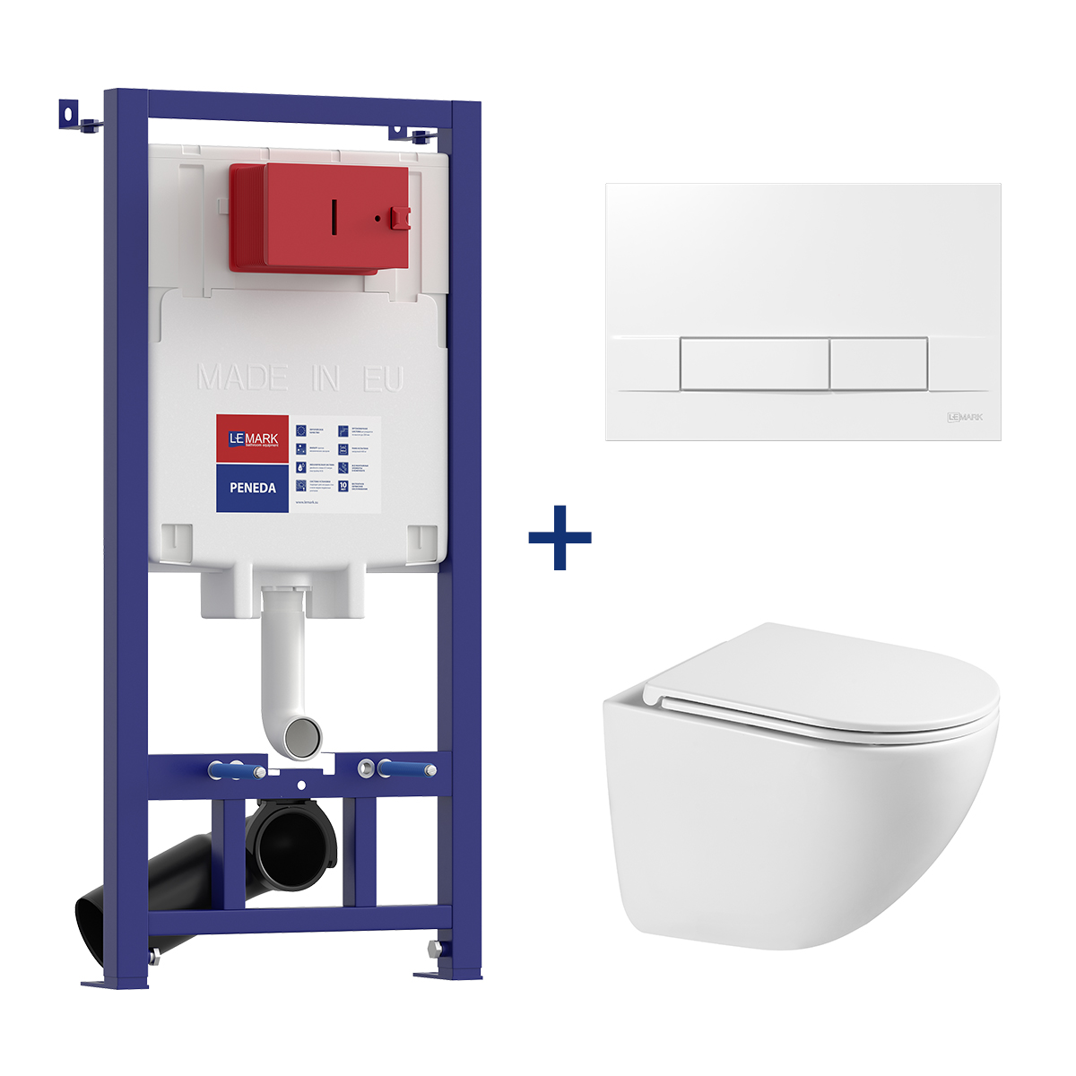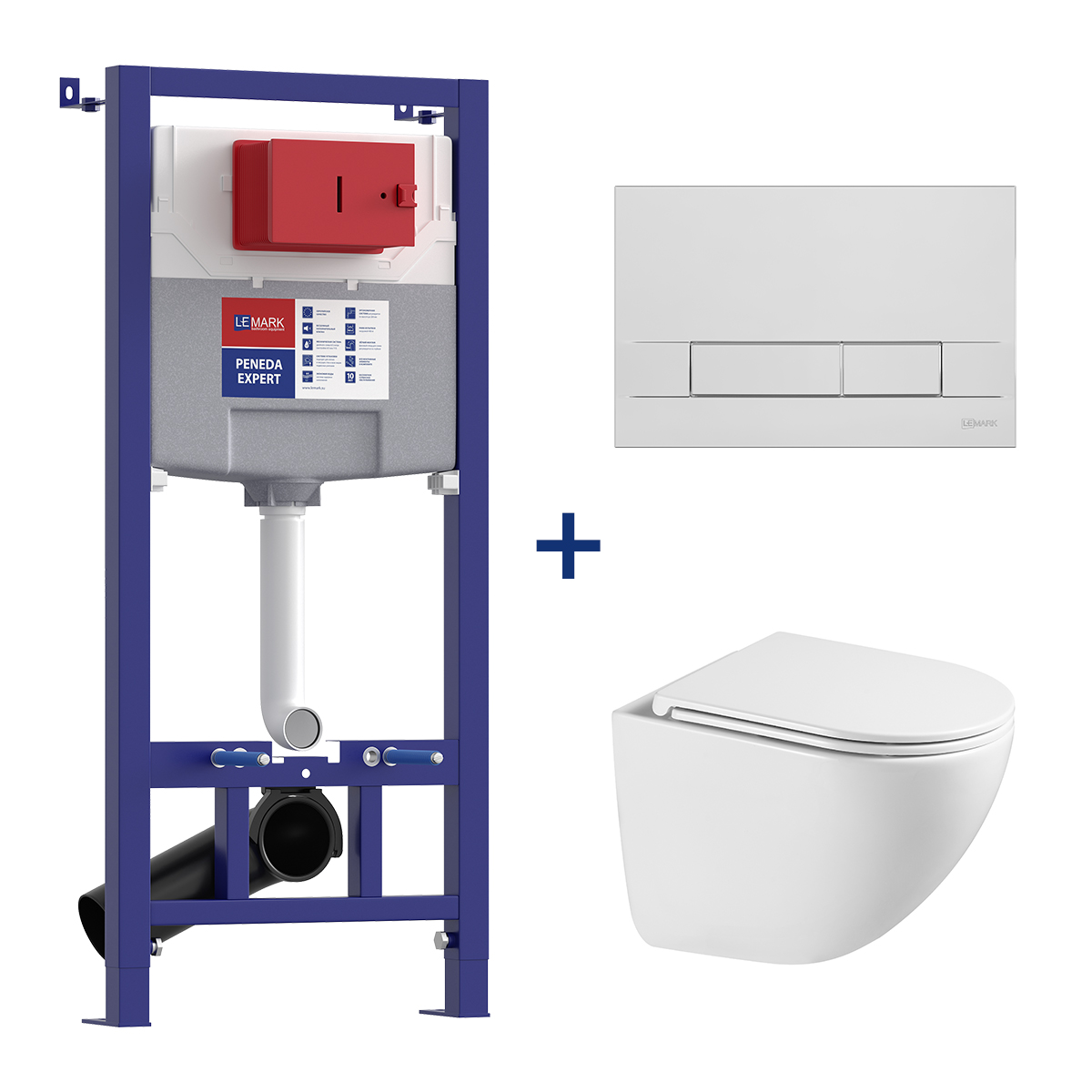 3в1: Инсталляция PENEDA с кнопкой смыва белый глянец + унитаз GLAZER 9614003