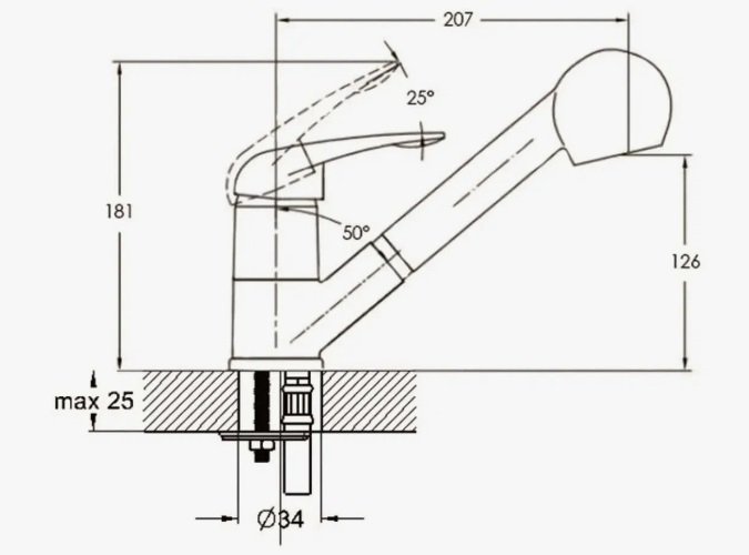 Смеситель для кухни с выдвижной лейкой, хром, D-Lin D158602