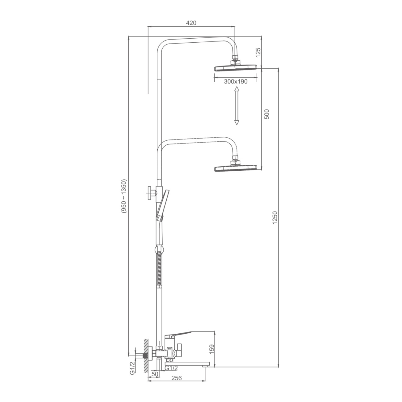 Душевая система для ванны и душа, серый Splenka, S40.24.07