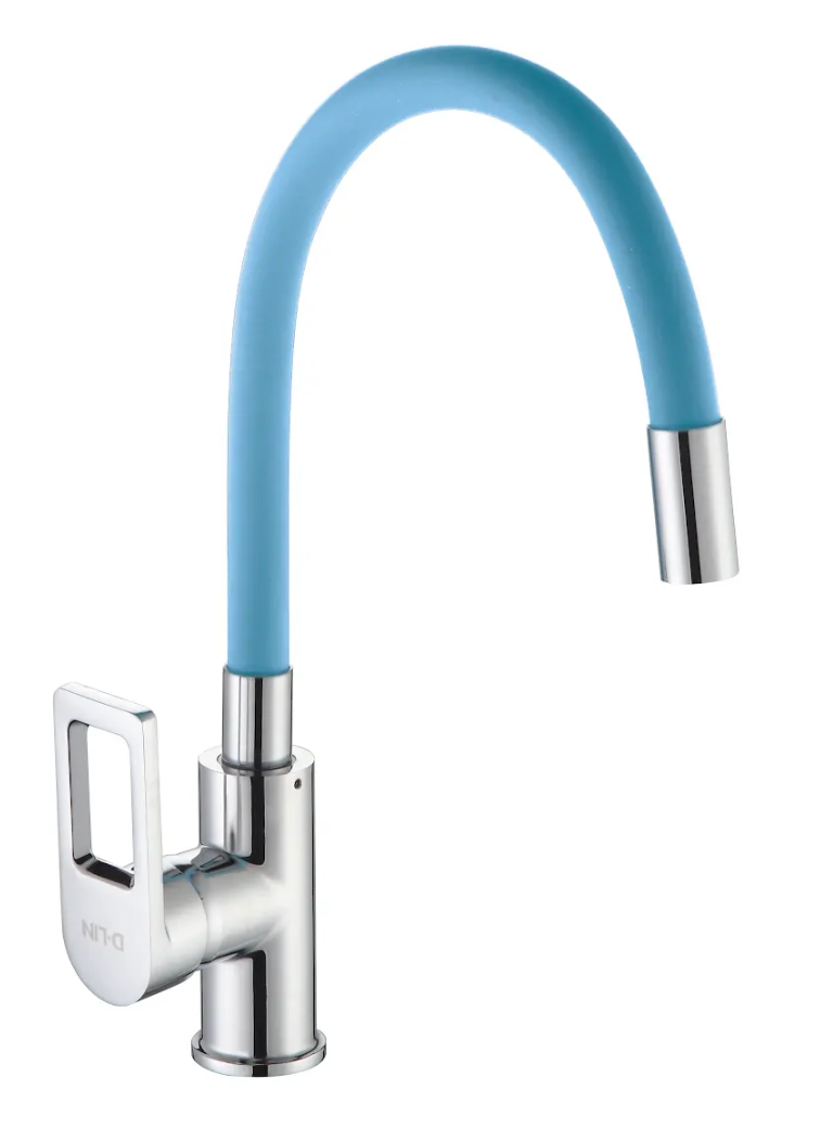 Смеситель для кухни с силиконовым изливом, синий+хром, D-Lin D155308-6