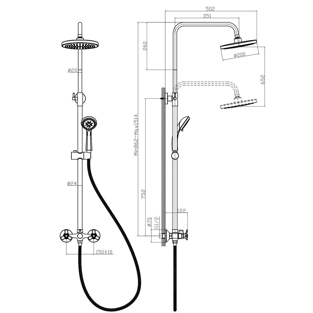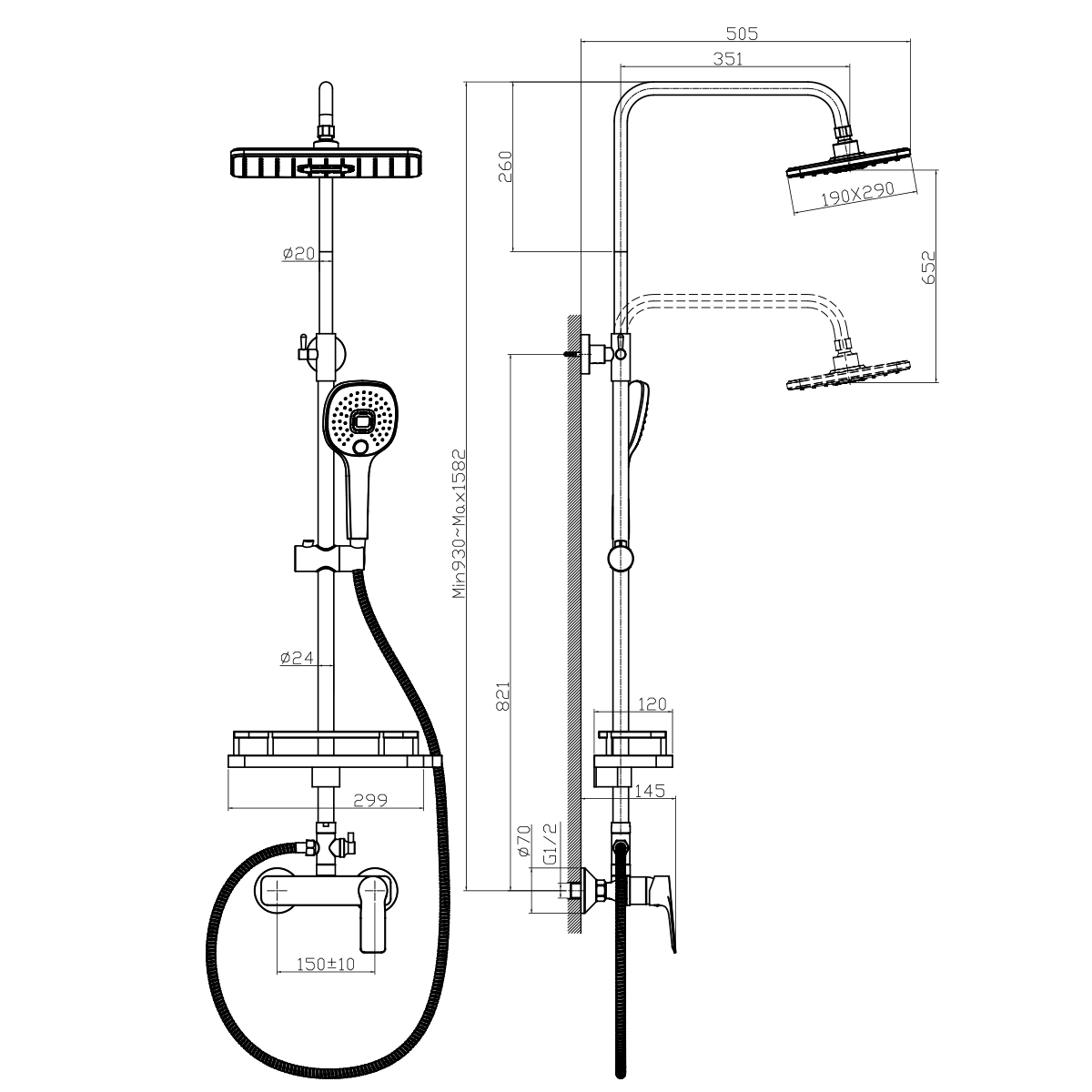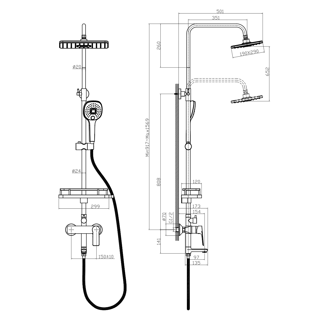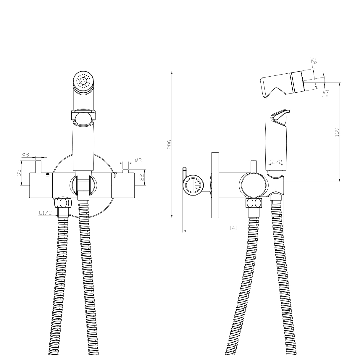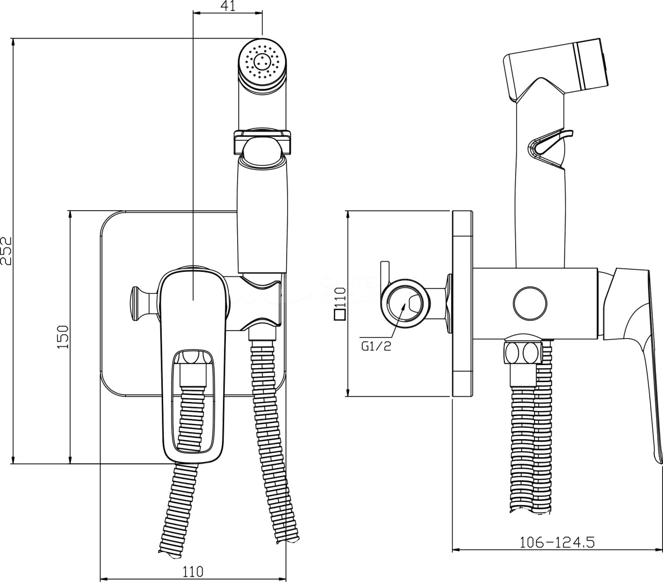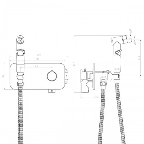 RS46-51 Смеситель с гигиеническим душем, встраиваемый, хром