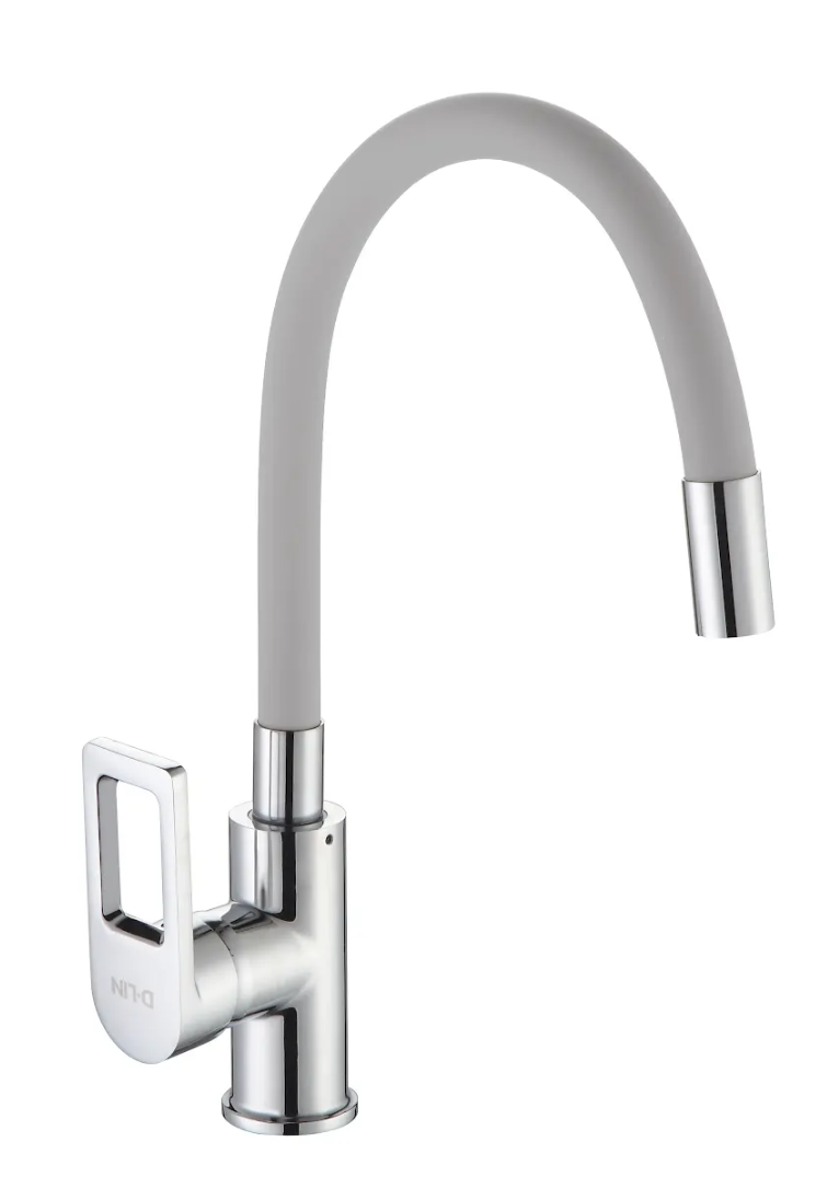 Смеситель для кухни с силиконовым изливом, серый+хром, D-Lin D155308-2