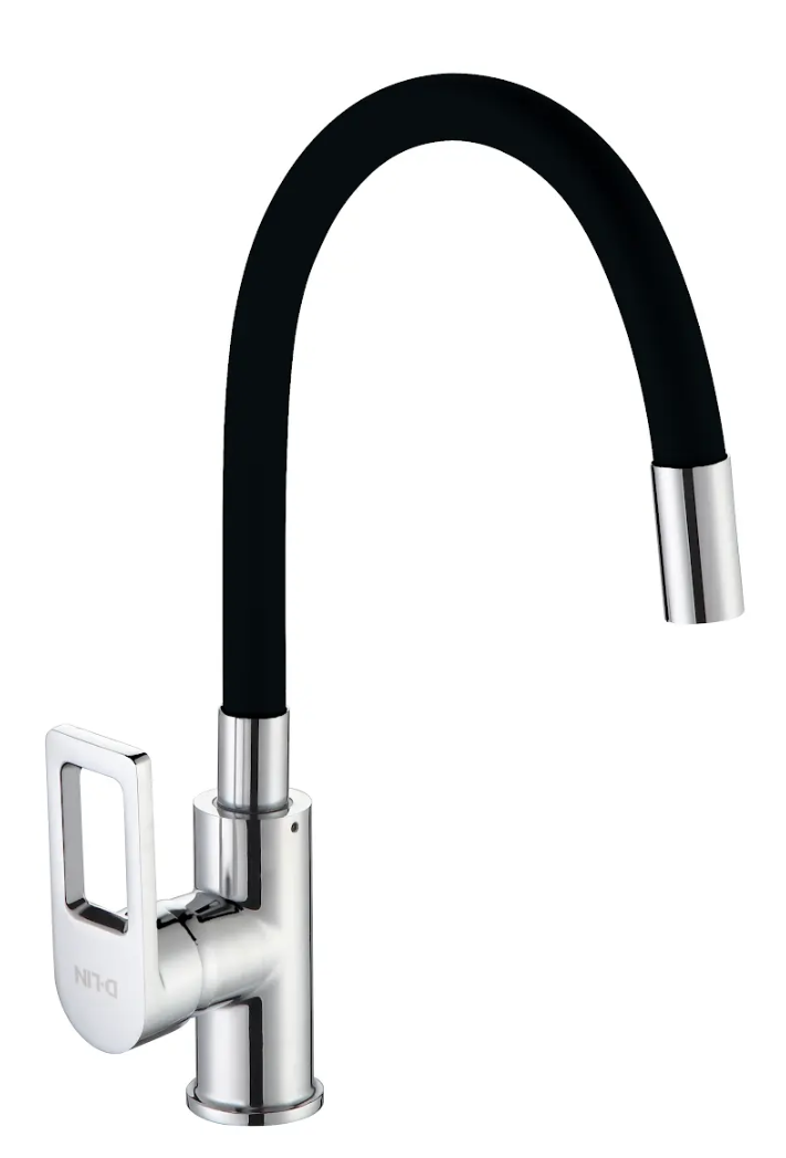 Смеситель для кухни с силиконовым изливом, чёрный+хром, D-Lin D155308-1
