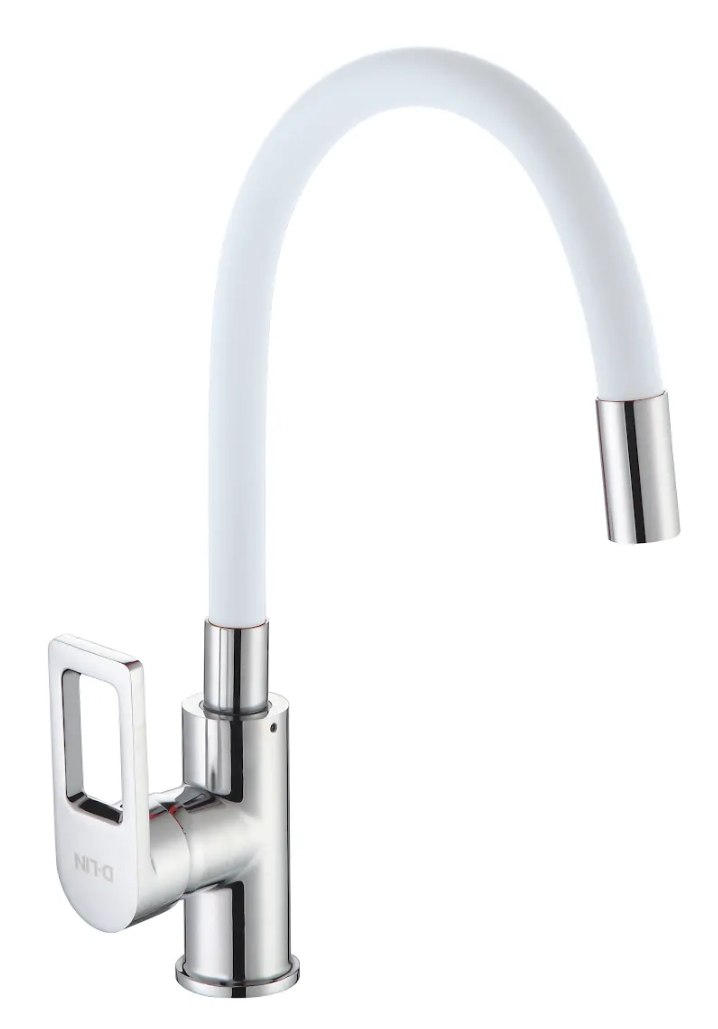 Смеситель для кухни с силиконовым изливом, белый+хром, D-Lin D155308-3