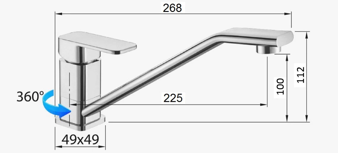 Смеситель для кухни с поворотным изливом, хром, D-Lin D153368