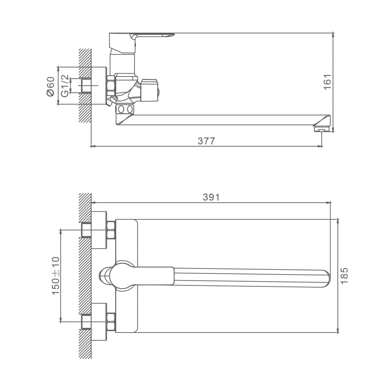 Смеситель универсальный для ванны, черный Splenka, S06.22.06