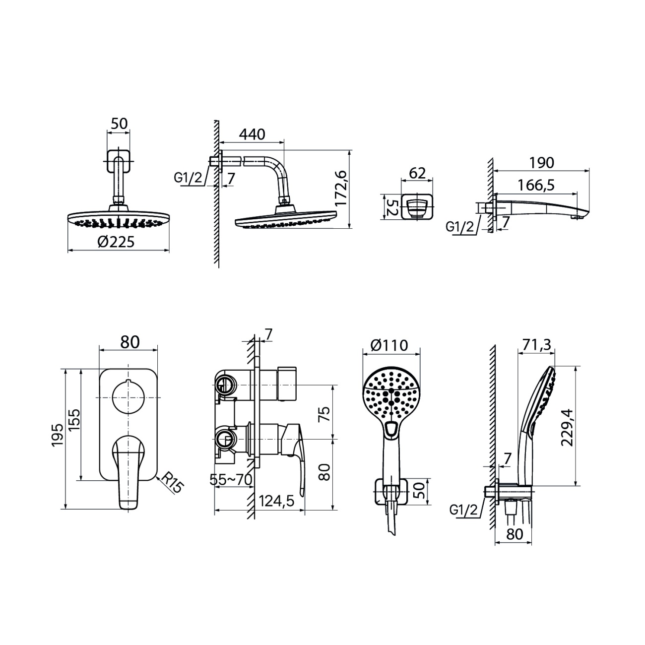 Смеситель с верхним душем с управлением Push Control, Slide, IDDIS, SLISBBTi06