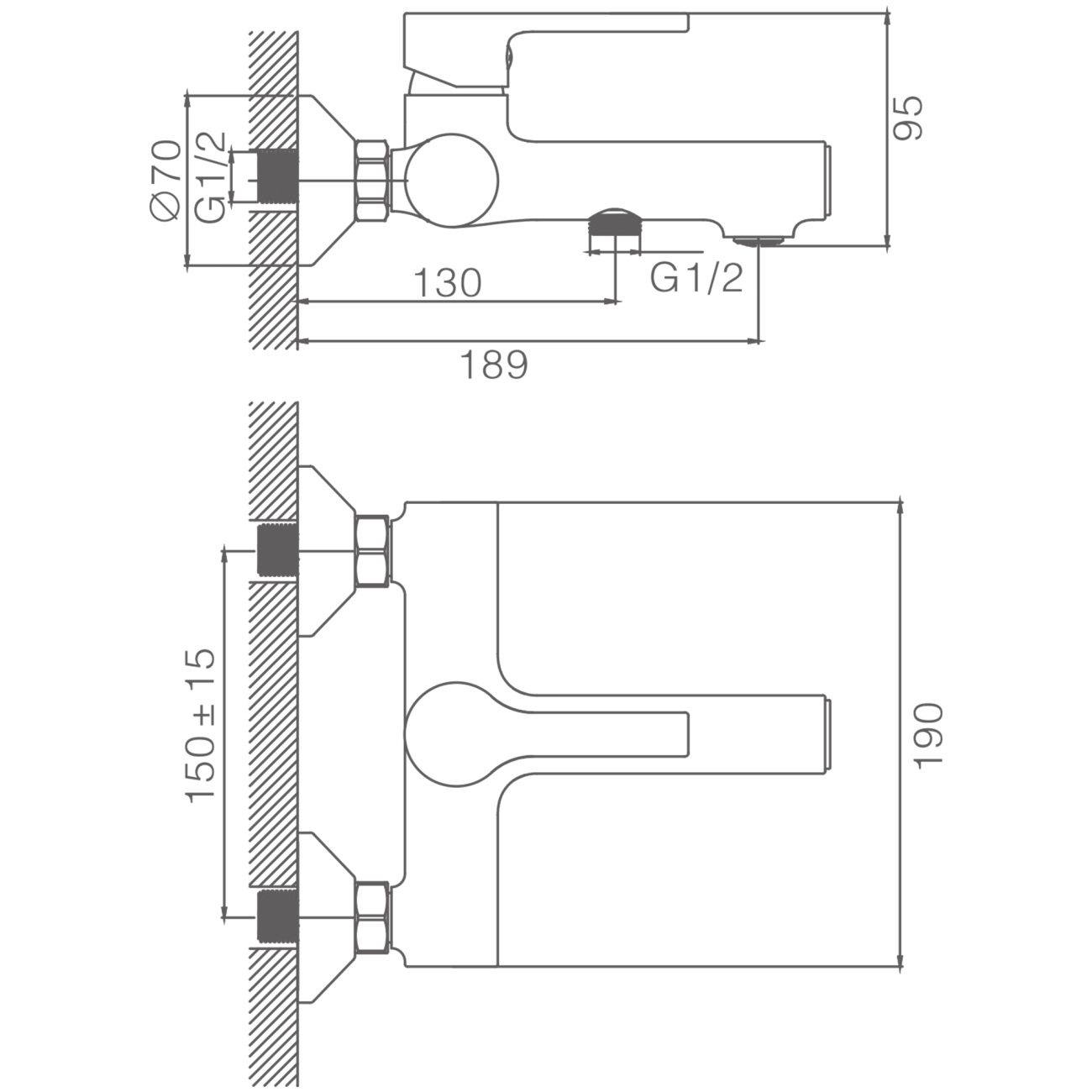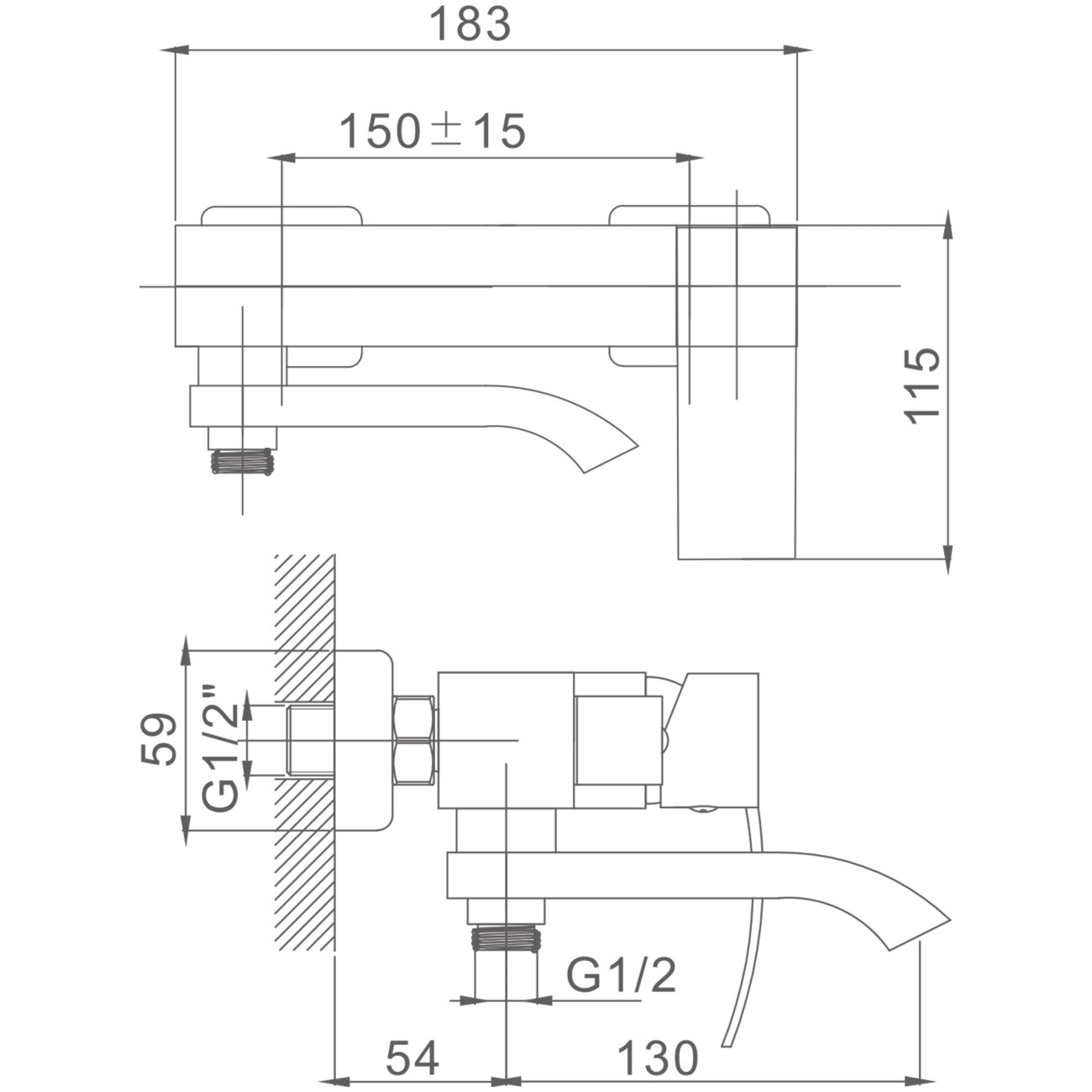 HB60815 Смеситель для ванной короткий цвет: сатин