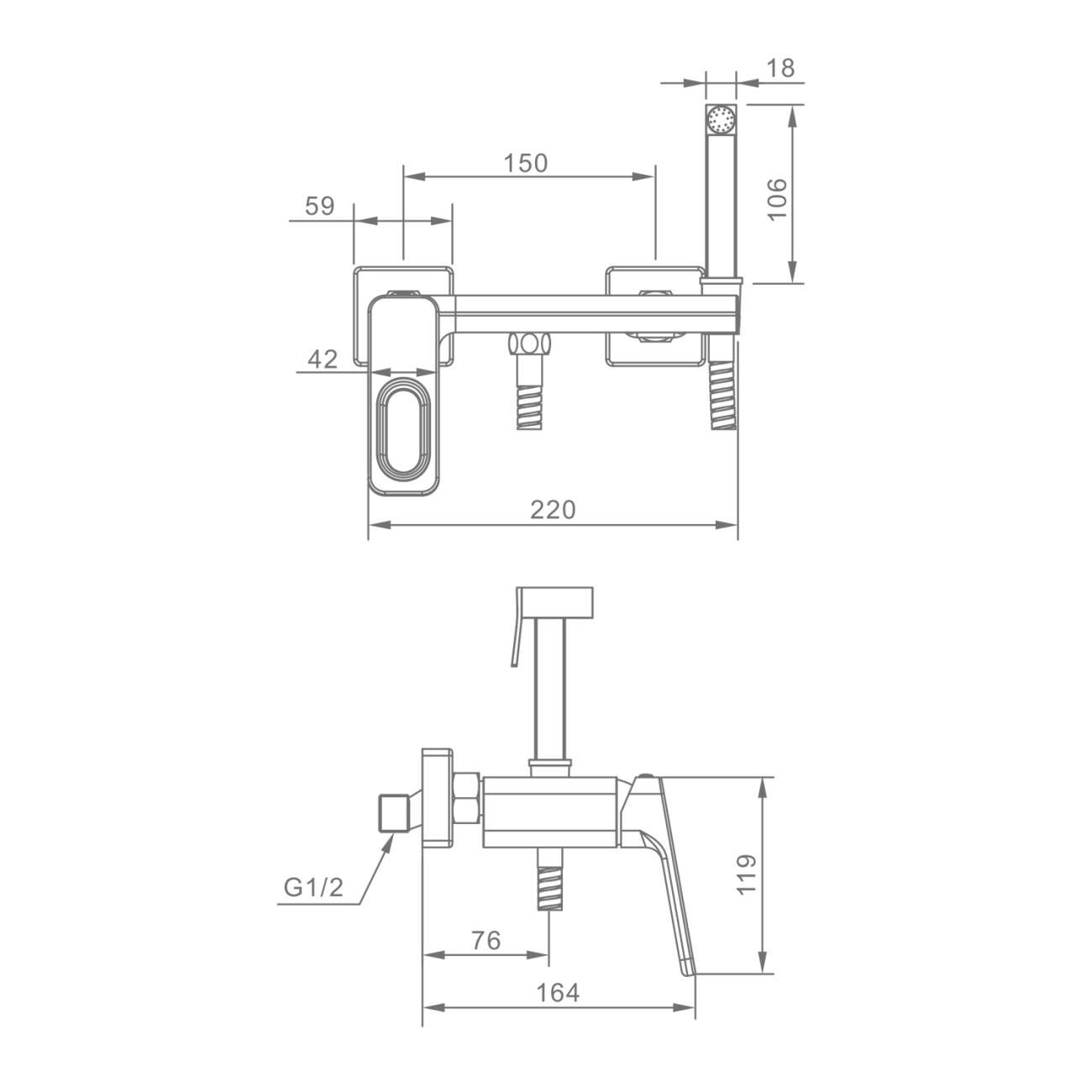 Смеситель настенный с гигиеническим душем, хром Raglo, R51.51