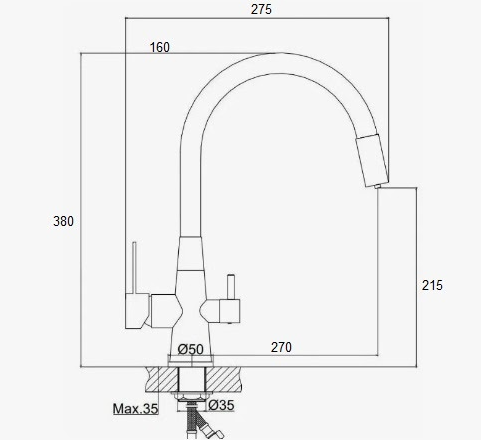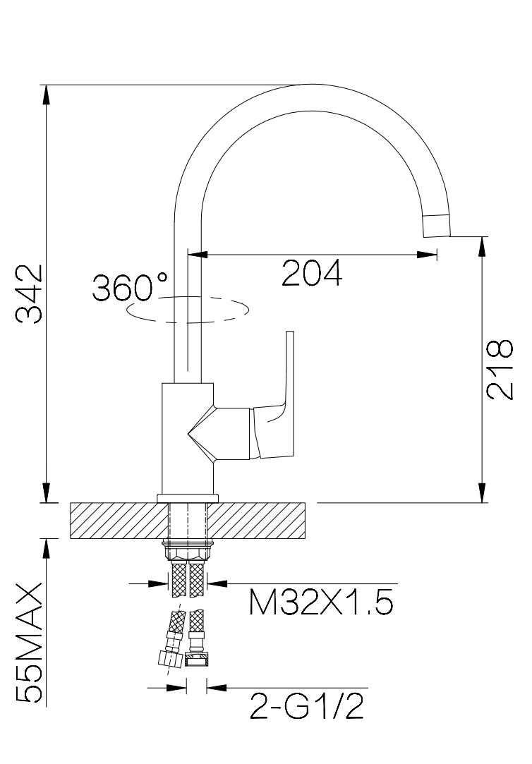 Смеситель для кухни, чёрный, D-Lin H155324-A