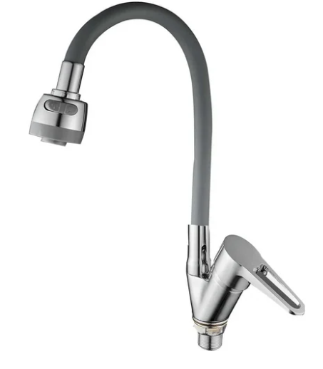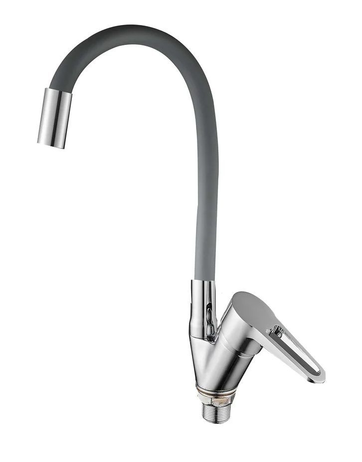 Смеситель для кухни с силиконовым изливом, серый+хром, D-Lin D150303-2