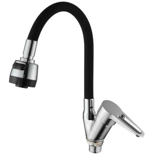 Смеситель для кухни с силиконовым изливом, чёрный+хром, D-Lin D150303-1