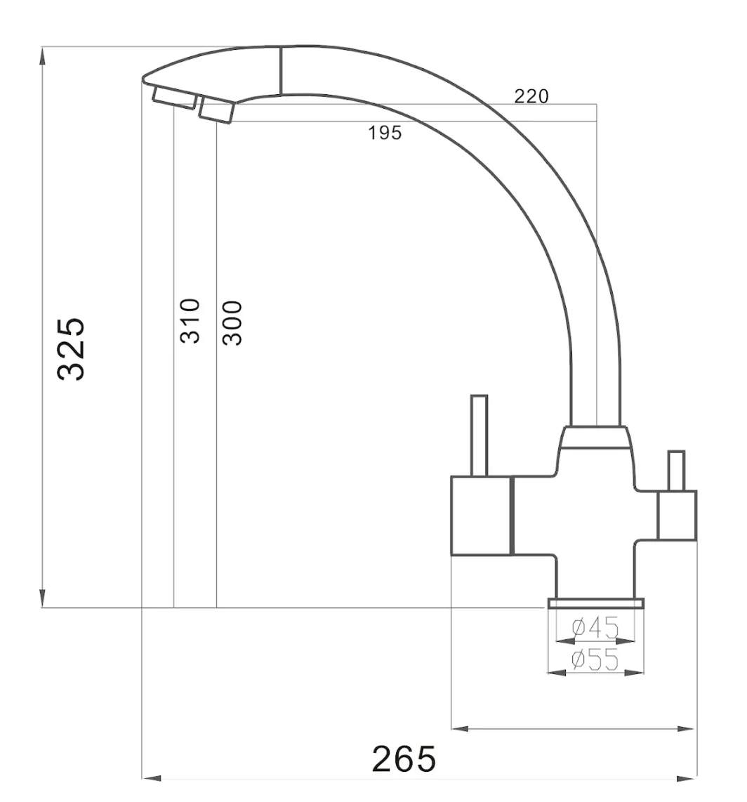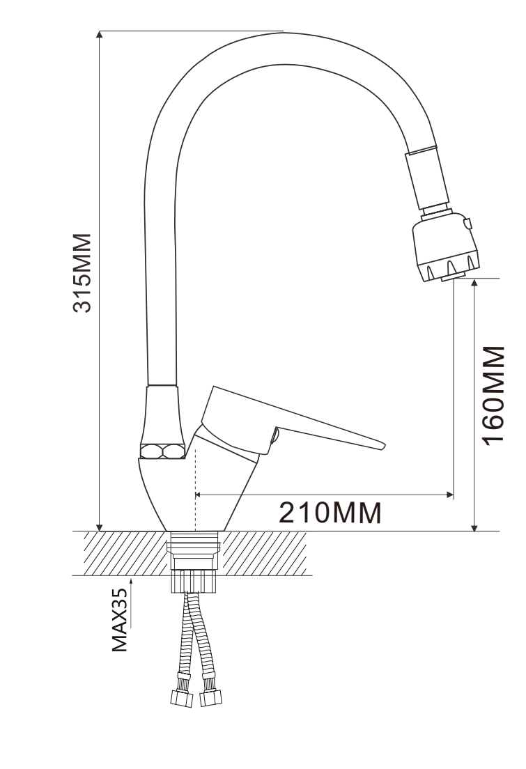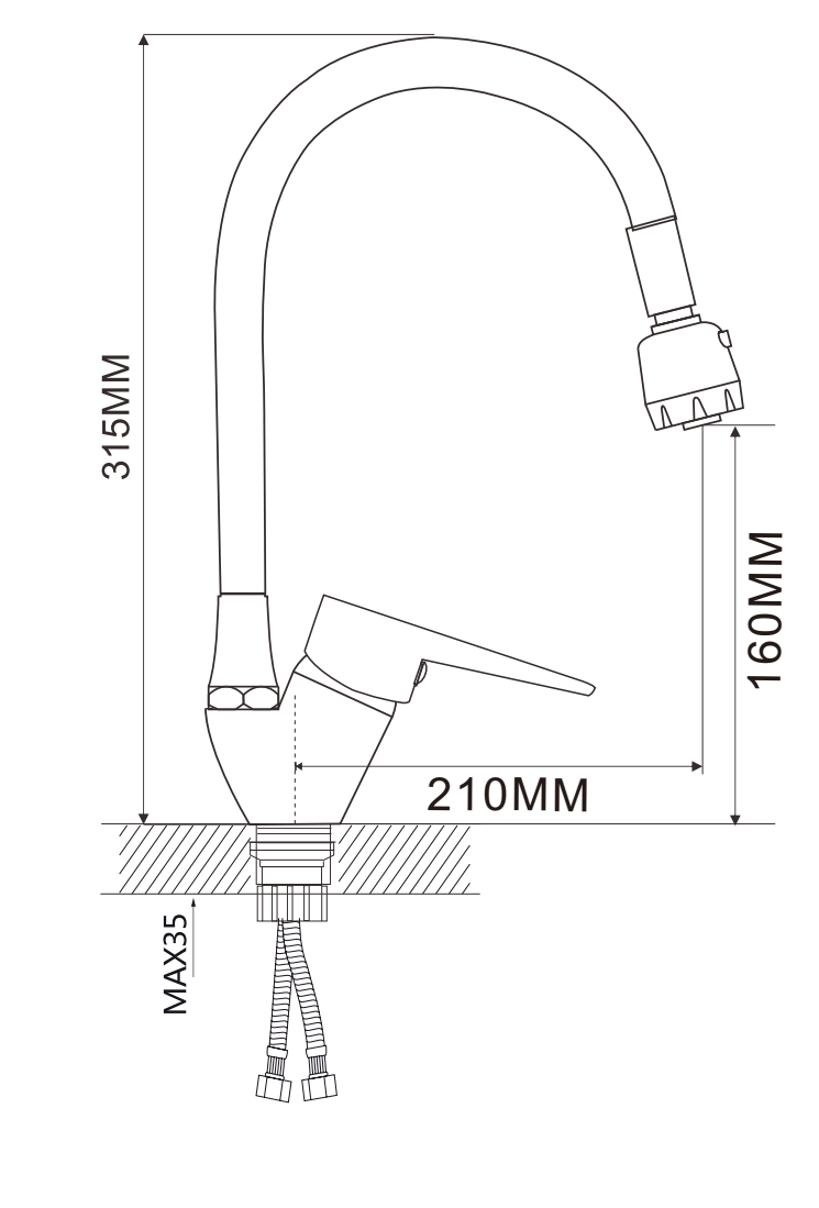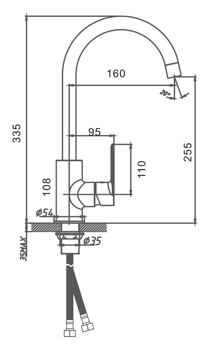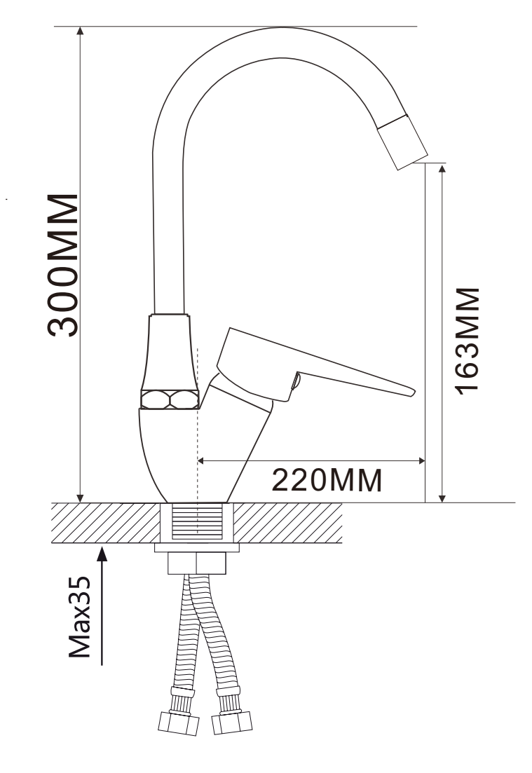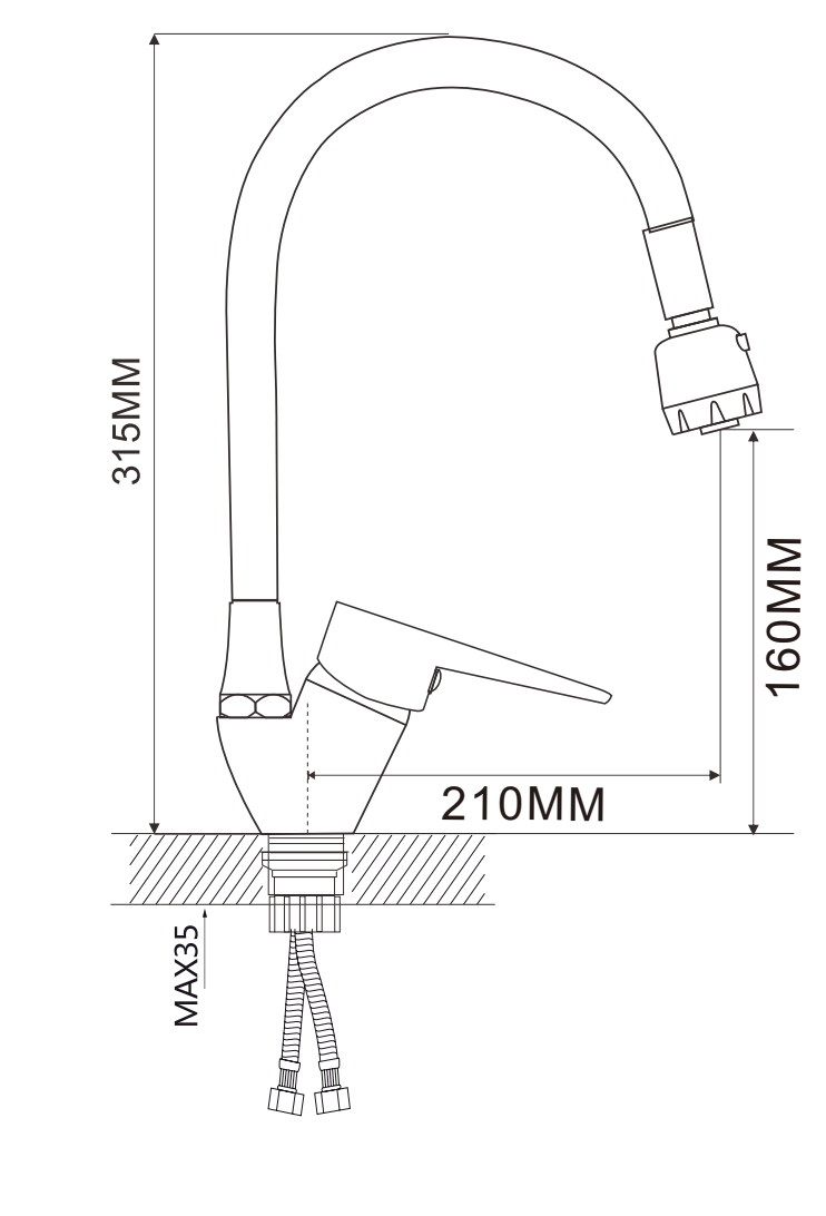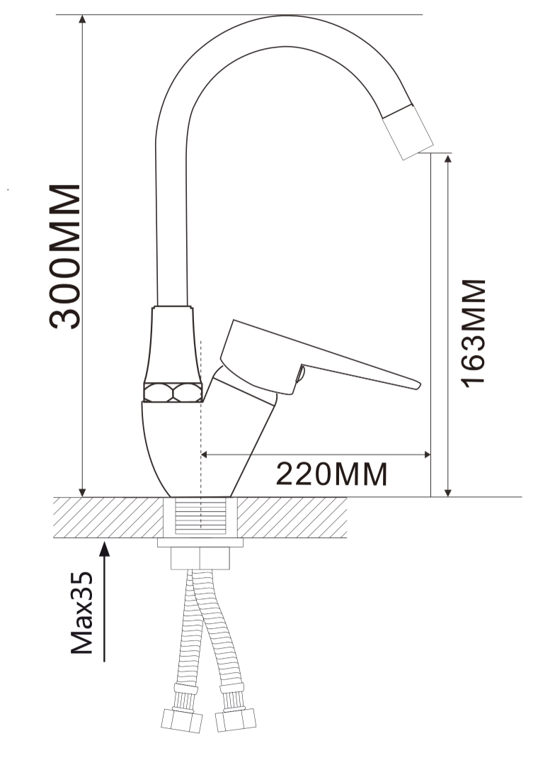 Смеситель для кухни, латунь, чёрный, D-Lin D155308-A