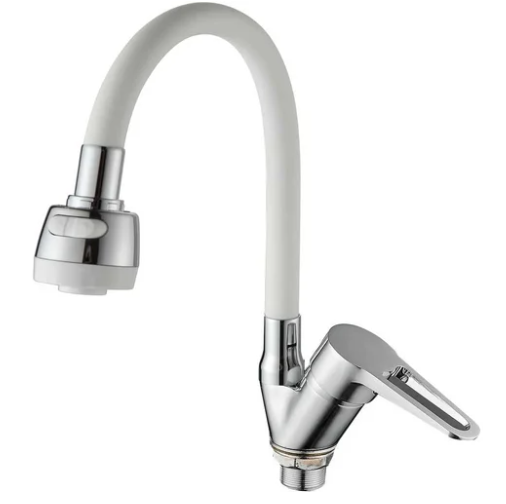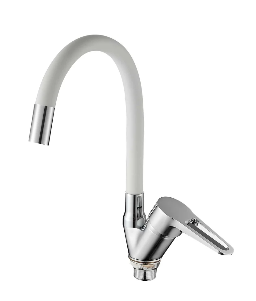 Смеситель для кухни с силиконовым изливом, белый+хром, D-Lin D150303-3