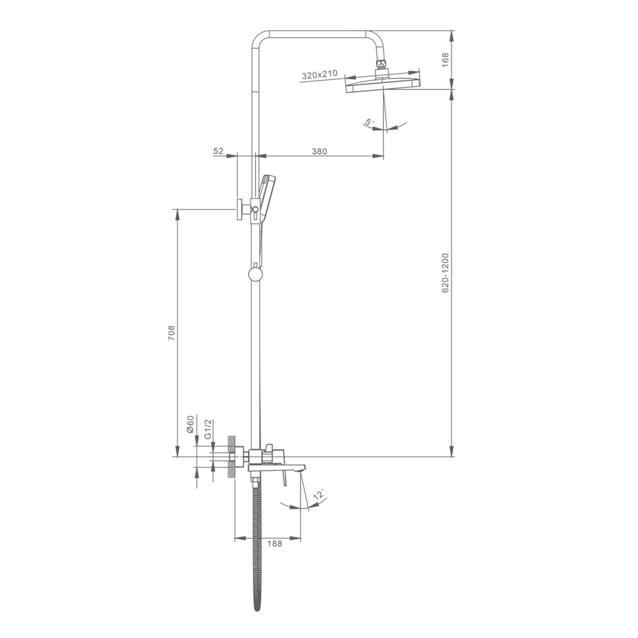 Душевая система для ванны и душа, хром Splenka, S06.24