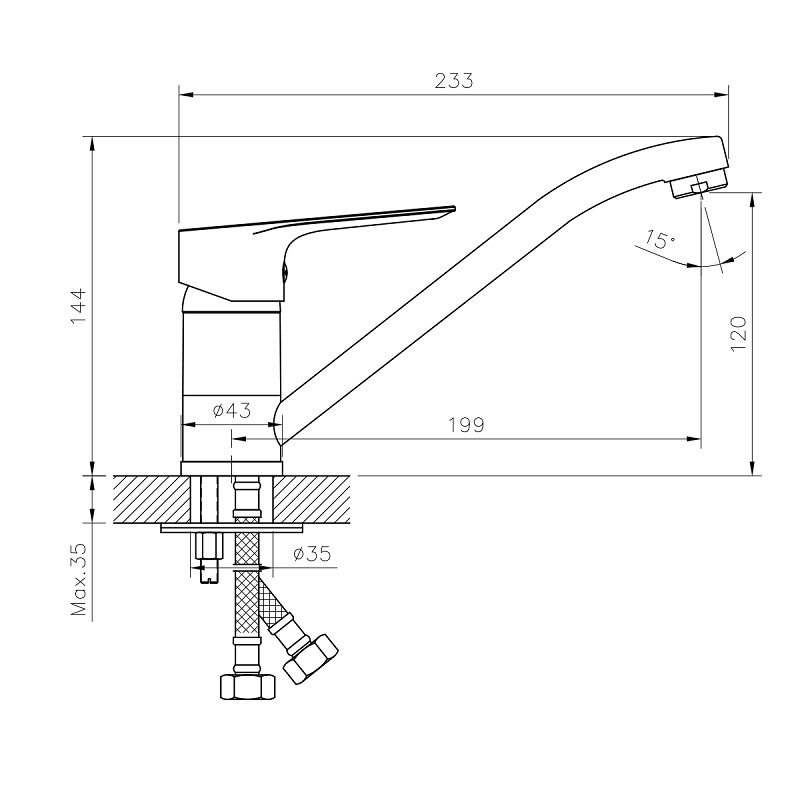 RS29-52 Смеситель одноручный (35мм) с гигиеническим душем, хром
