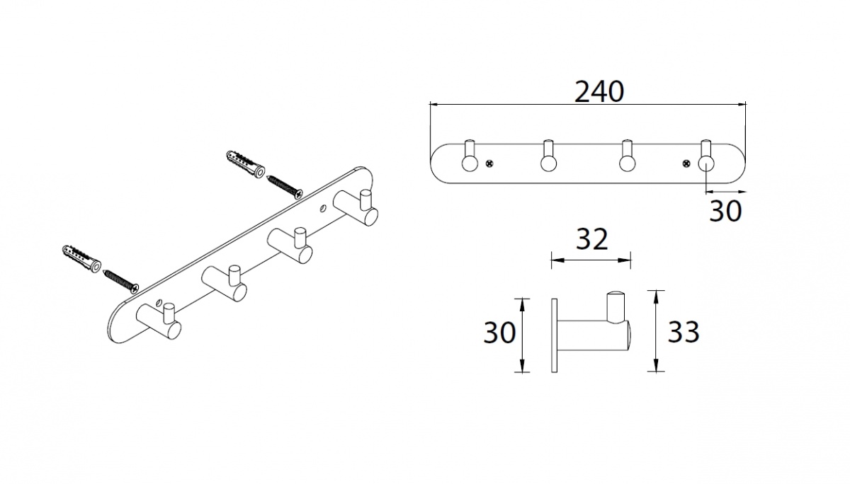 "HOTEL" Планка на 4 крючка FX-31005-4