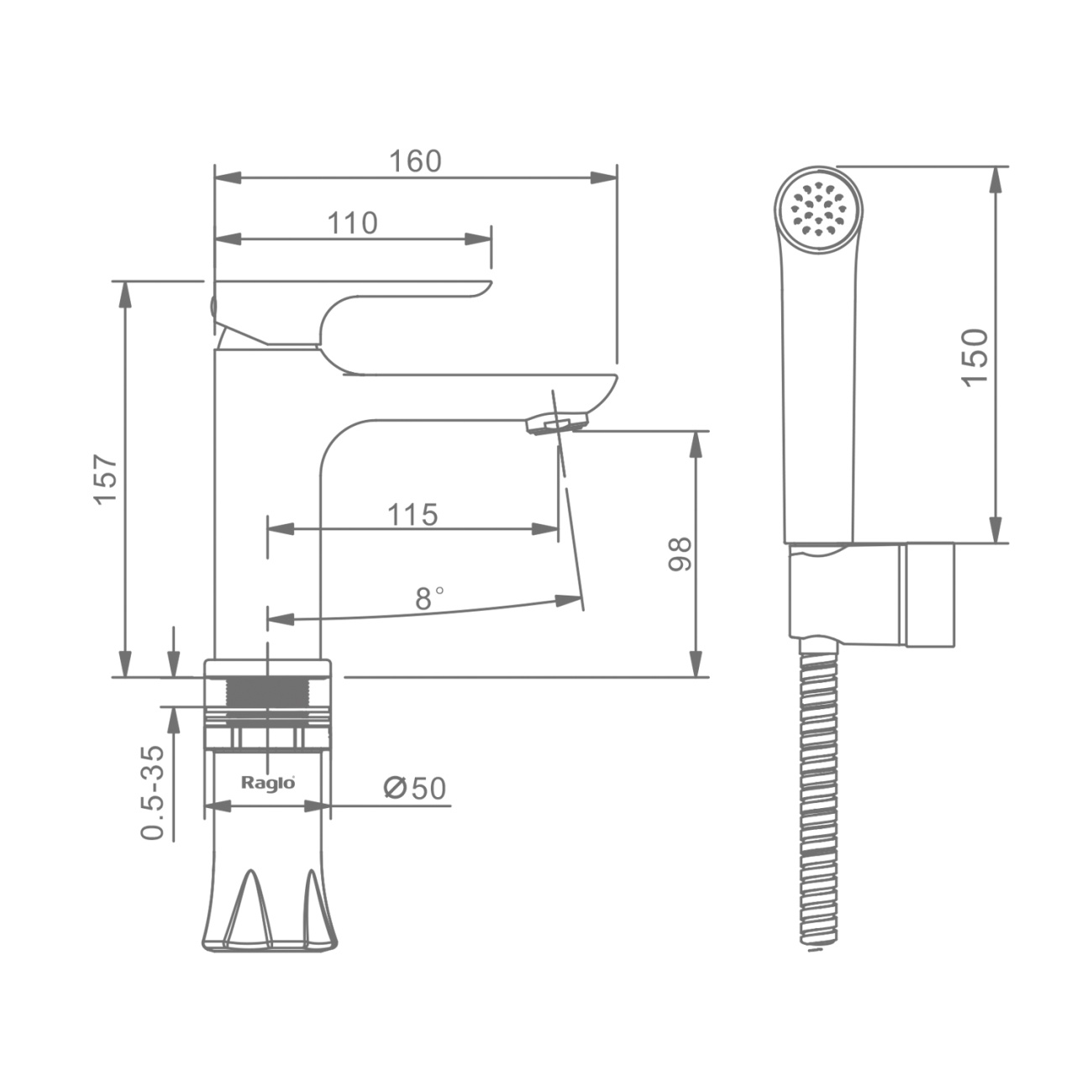 Смеситель с гигиеническим душем для умывальника, хром Raglo, R03.12