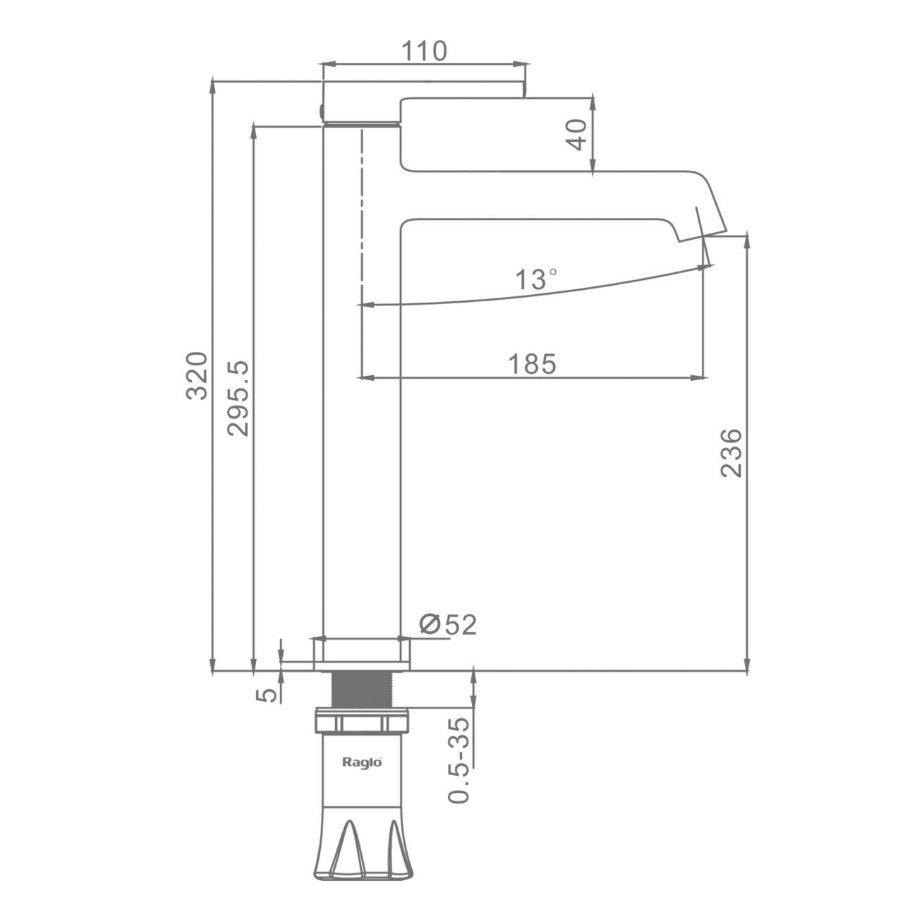 Смеситель высокий для умывальника, черный Raglo, R20.15.06