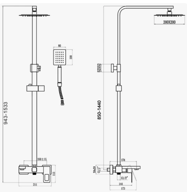 Душевая система, чёрный D-lin D10A05