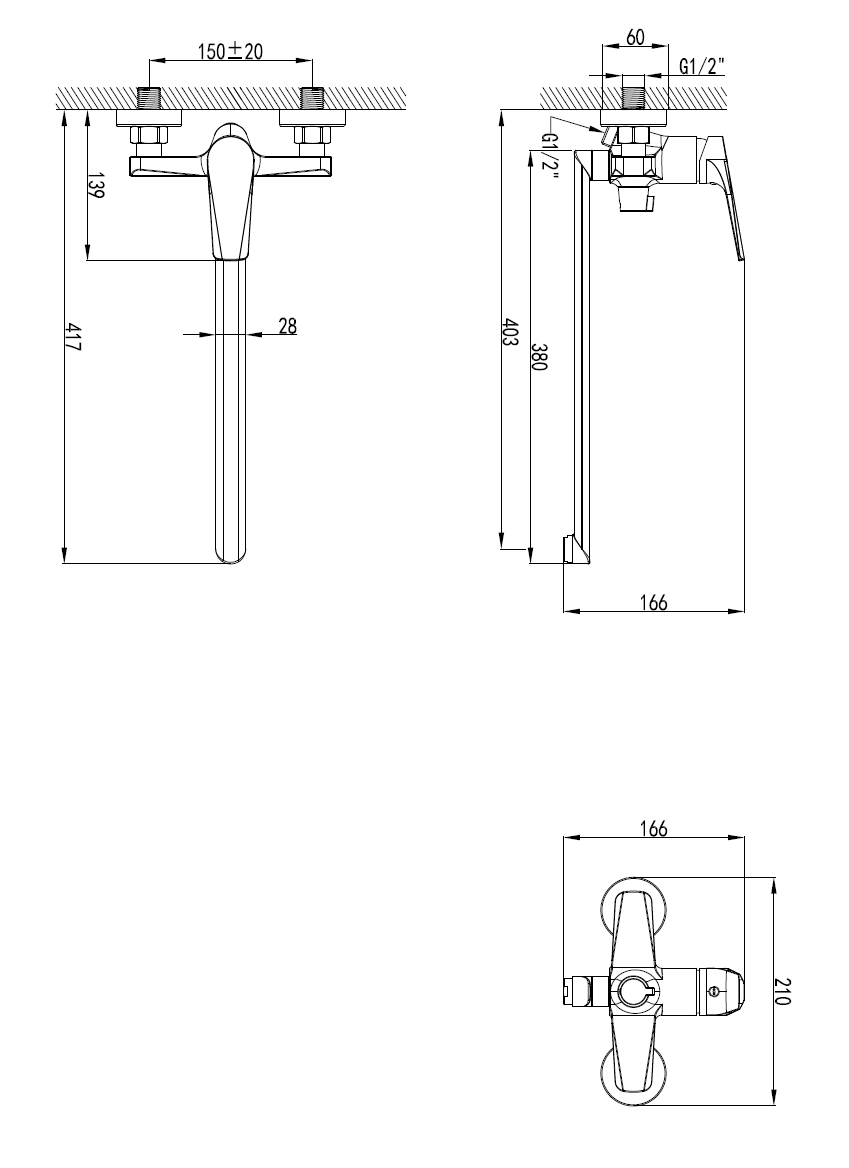 Смеситель для ванны VICTORIA AV3731 c монолитным изливом, цвет хром
