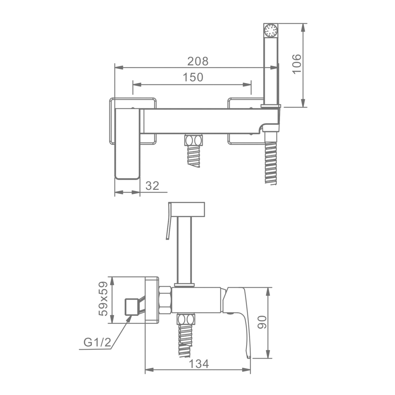 Смеситель настенный с гигиеническим душем, черный Raglo, R01.51.06