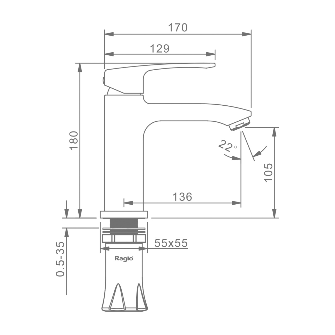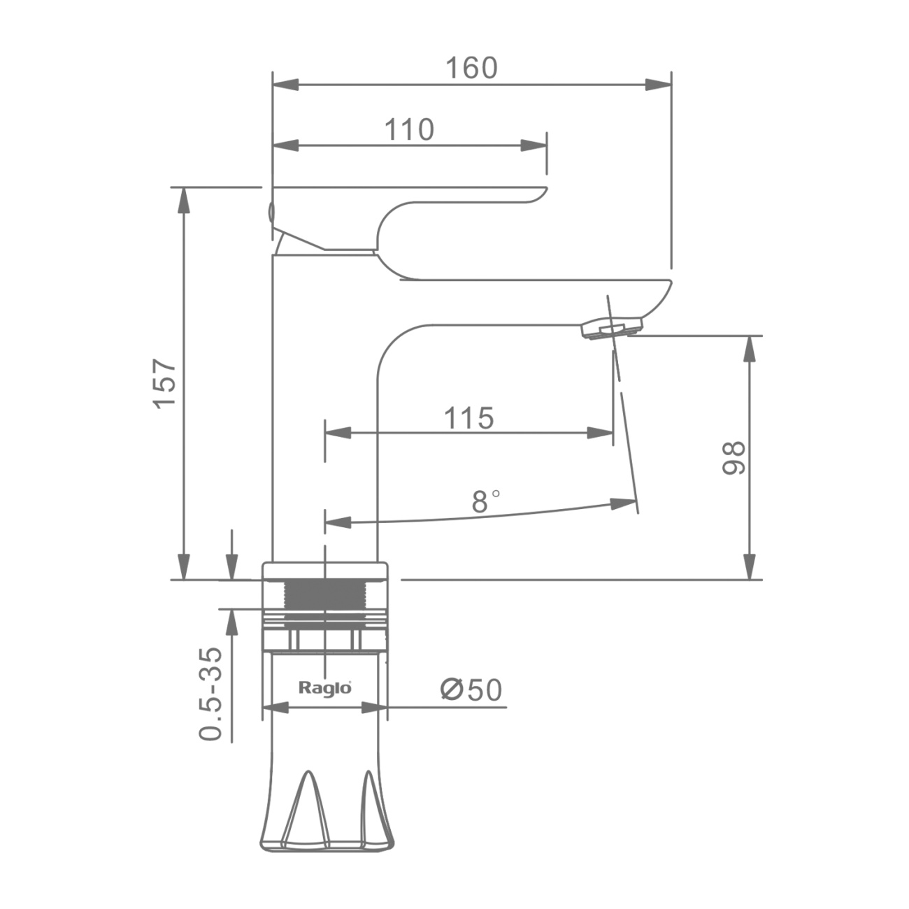 Смеситель для умывальника, графит Raglo, R01.10.09